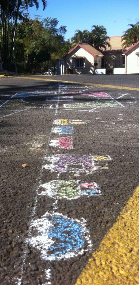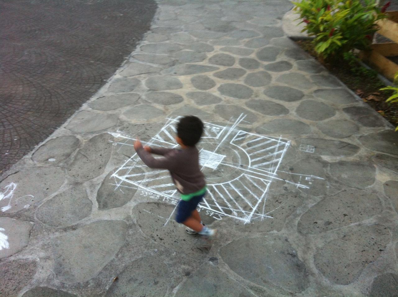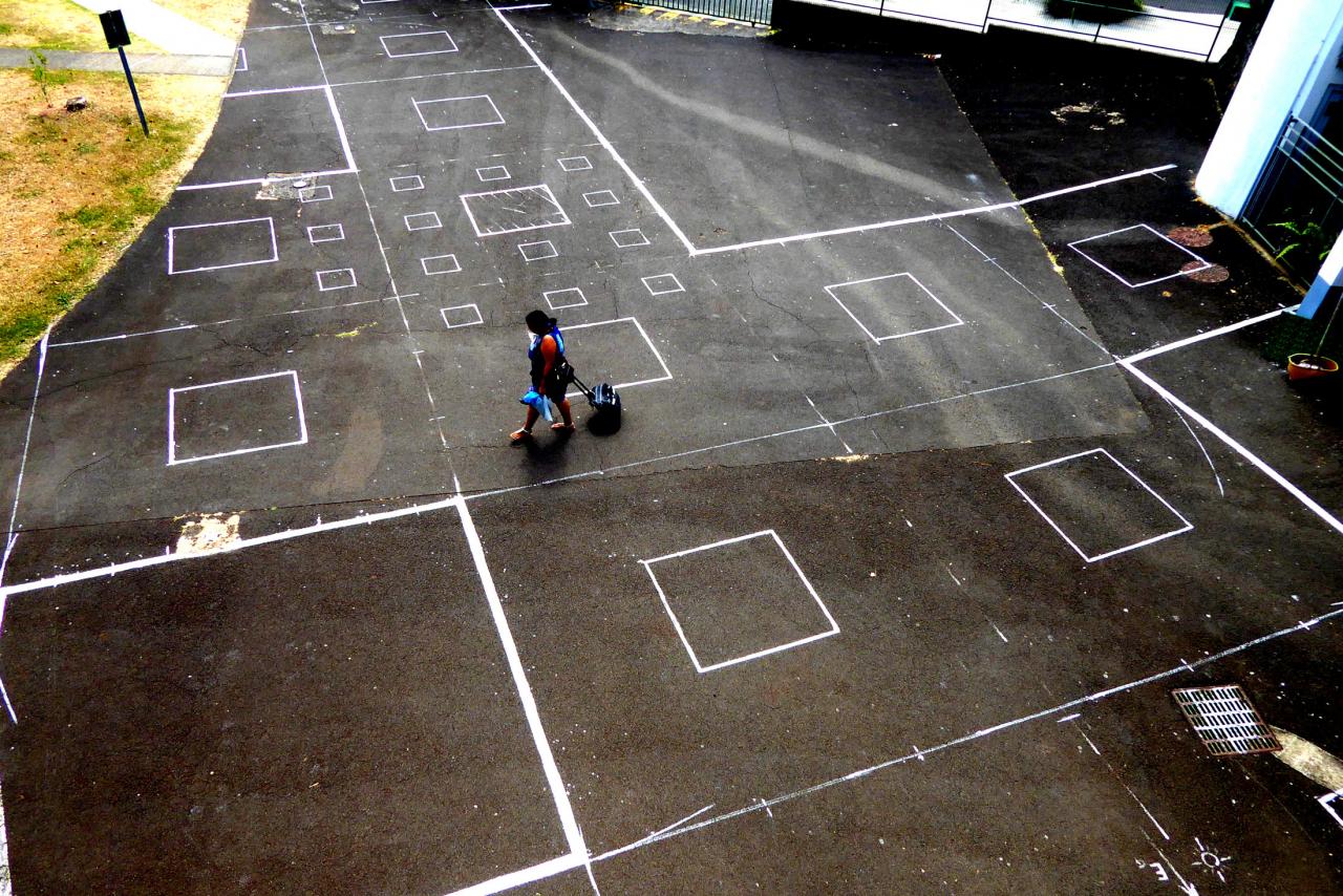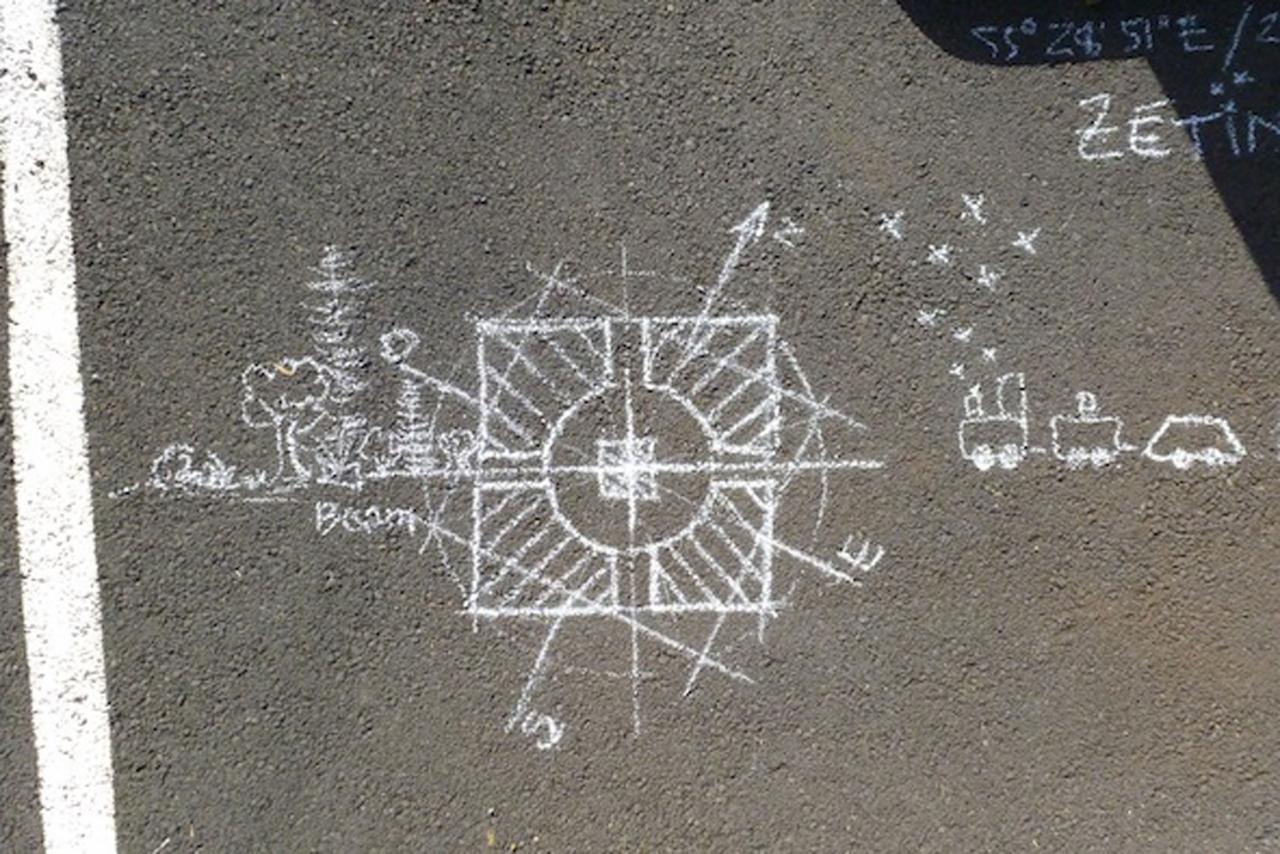 Tracé à la chaux, Lycée de Bois d’Olive, Saint-Pierre, La Réunion.