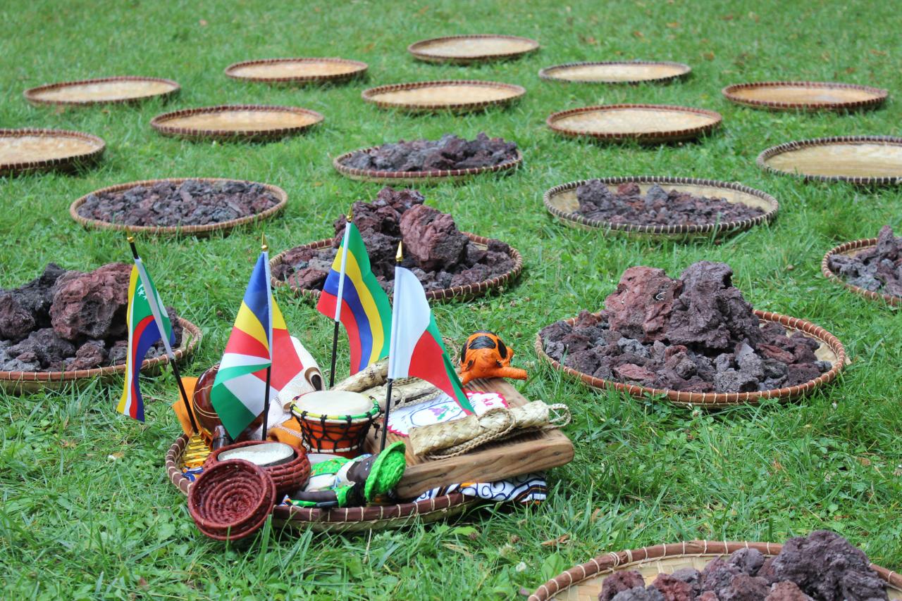 Chacune des quatre vannes contient des artefacts, des objets provenant des cultures qui nourrissent le creuset culturel réunionnais. Inde, Chine, Afrique - Madagascar - îles de l’océan Indien, Europe.