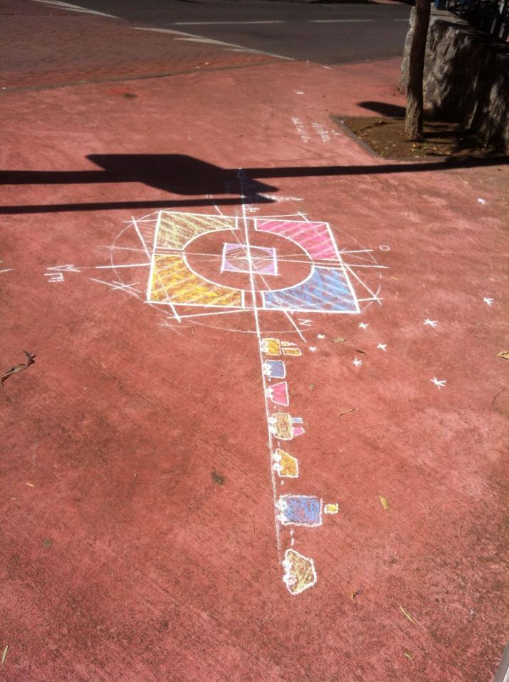 , 2012. Les quatre écoles maternelles de l’Entre-Deux, des centaines de marmay ! La restitution-convergence des travaux a eu lieu durant un week-end sur la place de la mairie et à l’arboretum : la création d’une nouvelle œuvre issue du regroupement des quatre différentes réalisées dans les écoles.
