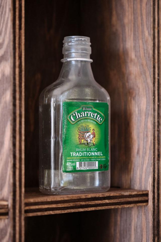 Ainsi le rhum, symbolisé ici par la « Pile Plate », nom donné à un contenant créé en 1988 et dont le degré d’alcool était de 49 %. Célébré sur l’île de La Réunion par la « Saga du rhum », établissement dit « touristique et culturel à visée éducative », le rhum est plutôt l’emblème du monde de la plantation esclavagiste hier et des grandes corporations capitalistes aujourd’hui. Les plantations de cannes à sucre dont il est issu, ont justifié l’asservissement, appauvri les terres, détruit l’environnement. Le rhum a été une arme de destruction coloniale des âmes et des corps. En transformant cet instrument d’oppression en un élément indispensable et central des rites afro-malgaches aux ancêtres esclavisé·es qui n’ont cessé de fuir la plantation, les Réunionnais·es ont démontré la force des pratiques populaires indisciplinées. Ce sont ces paradoxes que l’artiste met ici en scène. »