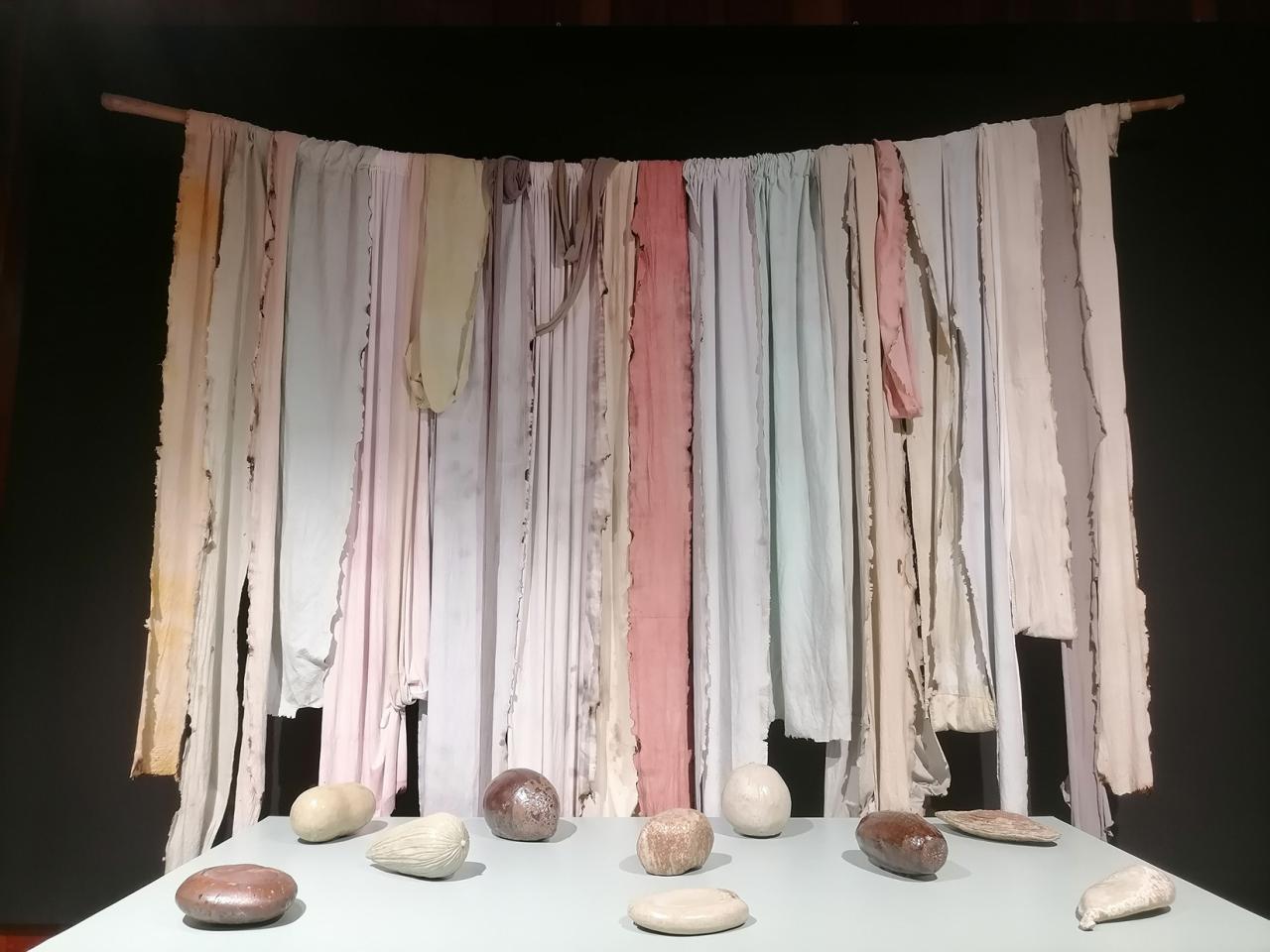Cette pièce en cours de création résonne avec Le Cordon des graines réalisée quelques années auparavant. Cette installation évoque le mythe romain des trois Parques, divinités maîtresses de la destinée humaine, de la naissance et de la mort. Une quinzaine de graines réalisées en grès de Saint-Amand desquelles a surgi un émail blanc, allusion aussi bien au liquide séminal qu’au lait maternel, se déploie sur des machines traditionnelles en bois servant au tissage du lin. Tel un fil d’Ariane, le parcours offre une métaphore des cheminements possibles d’une vie, entre production humaine et élément naturel, entre conduite à tenir et aléas.