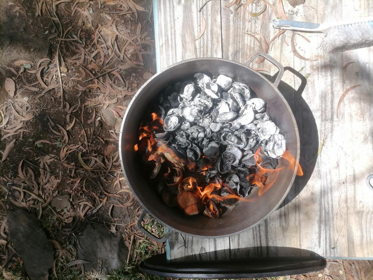 Le jardin est un être vivant. De la fraîcheur de l’hiver austral à la moiteur bouillonnante du mois de décembre, il vit au rythme des saisons. Mais sa flamboyante végétation doit partager son espace vital avec ce qui la verra disparaître demain. Des volutes de fumée montent dans les airs, un feu est allumé dans un bidon métallique. Le terrain garde la trace des feux passés, froids, peut-être encore un peu tièdes. Qui sait. Celui du jour est incandescent, l’artiste s’y attache. Elle est à l’œuvre. Issus d’une sélection rigoureuse d’écorces, de troncs, de feuilles, de cosses ou de pelures des espèces en présence, les végétaux entament leur irrémédiable transmutation. Léchés par les flammes, ces organismes pluricellulaires, capables grâce à la photosynthèse de transformer la matière minérale prélevée dans leur milieu de vie pour produire leur propre matière organique, sont rapidement réduits en cendre pour devenir minéraux à leur tour. Avide de savoirs ancestraux, formée à la céramique traditionnelle comme contemporaine, Alice Aucuit mène une recherche territorialisée sur les cendres de végétaux. Initiée à partir de rebuts (déchets d’élagage, sarments, foins fauchés, plantes de marécages, paille de riz, cosses de café, fleurs coupées), elle s’appuie sur le travail effectué par le Bureau de recherches géologiques et minières sur les sols et gisements réunionnais. De la composition organique de la plante, de son lieu de croissance, de la saison et de l’élément récolté va dépendre la composition des cendres, et donc les caractéristiques de l’émail qui sera réalisé à haute température. Les émaux de cendre, apparus en Chine sous la dynastie Zhou (−1100), permettaient d’imperméabiliser les poteries. Aujourd’hui ils offrent à l’artiste un champ de possibles dans la réalisation de ses pièces, tant au niveau conceptuel que visuel.