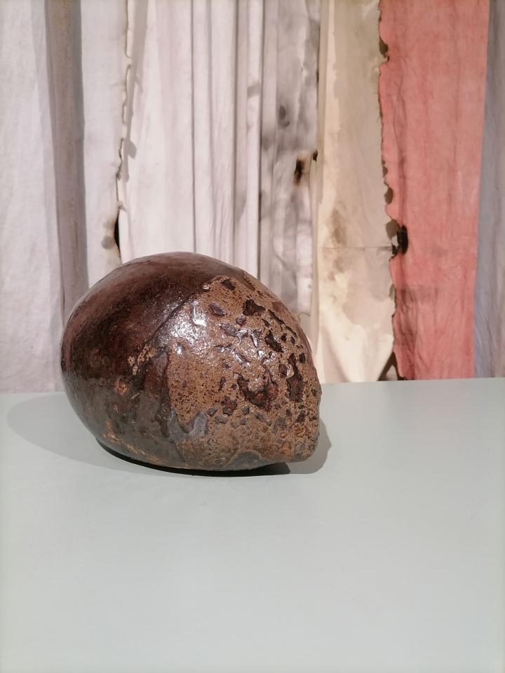Une pulsation sourde rythme son œuvre. À chaque projet, un kèr (cœur, en créole) prend forme dans les surplus de matière enlevés lors de l’évidage, au moment précis où l’argile a la consistance dite « du cuir ». Ces organes vitaux se glissent dans les cuissons, figés par le feu dans l’éternité. Ils se parent alors d’atours, résultats du travail d’enquête mené par l’artiste sur les cendres pour l’obtention de ses émaux endémiques, que l’on retrouvera utilisés à bon escient dans ses travaux suivants. Un jour, peut-être, exaucera-t-elle également ce souhait (in)avouable d’intégrer des cendres de crémation à son œuvre, car « introduire de la cendre dans les émaux, c’est introduire dans sa recherche la complexité de la vie3 . »
