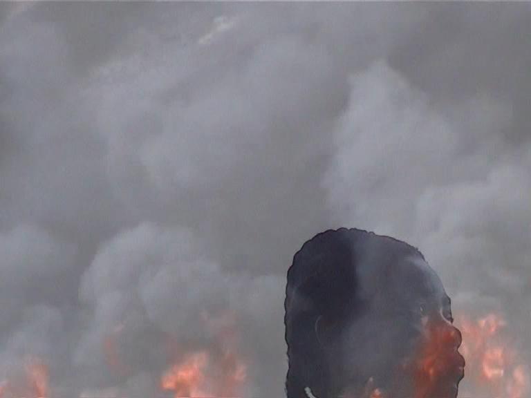 C’est avec Moroni (2002), une vidéo réalisée aux Comores, que l’artiste trouve son écriture. À proximité du port, depuis le balcon de sa grand-mère, il capte le débarquement de militaires, l’armée du colonel-dictateur Azali Assoumani, venus réprimer les manifestations menées par les jeunes habitant·es contre le pouvoir en place : affolements, affrontements, embarquements, coups de feu. Deux types d’images se font écho : les unes documentant l’événement, les autres – images du port, feu d’un pneu… – relevant d’une représentation abstraite, intime et subjective, auxquelles l’artiste, retirant les premières, décide finalement de laisser place.
