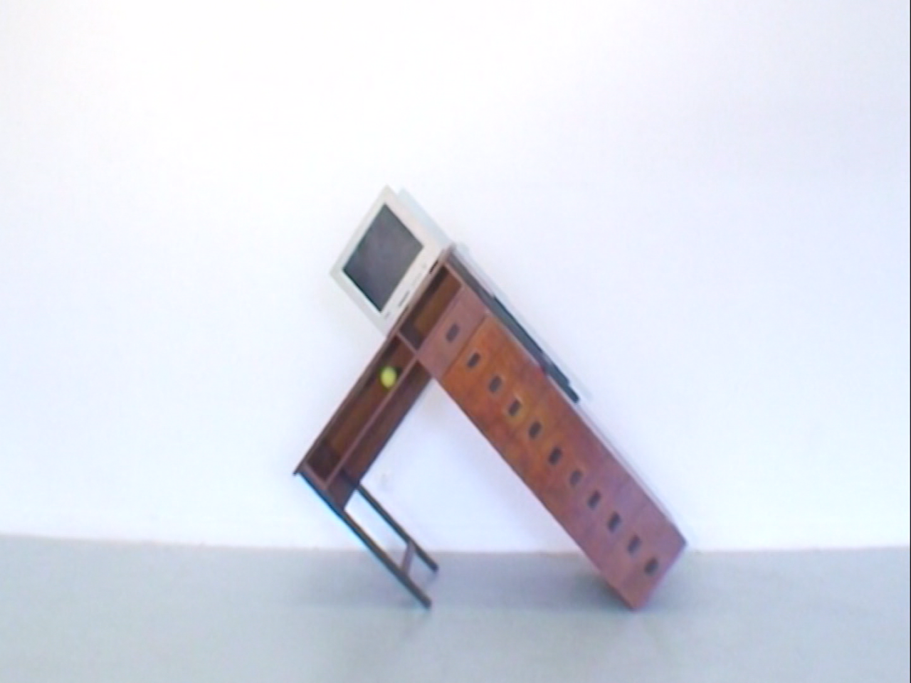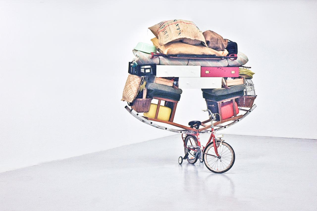 While Tiéri Rivière may not favour any specific medium and effortlessly shifts from video to installation to drawing to volume work, the same attachment to the idea of balance runs throughout his work, as he experiments and researches this notion in pieces based on tension and potential collapse. By materialising the expectation for a situation to occur (or not), the artist plays with time and with the way it will affect the viewer’s perception of the art. This temporal variable plays a part in the creative process, whether through the idea of suspension or the idea of repetition. This is especially the case in his videos, all of which follow the same production principle: short, looped sequence-shots of simple and often funny situations, producing burlesque overtones that appear implicitly throughout his entire body of work.
