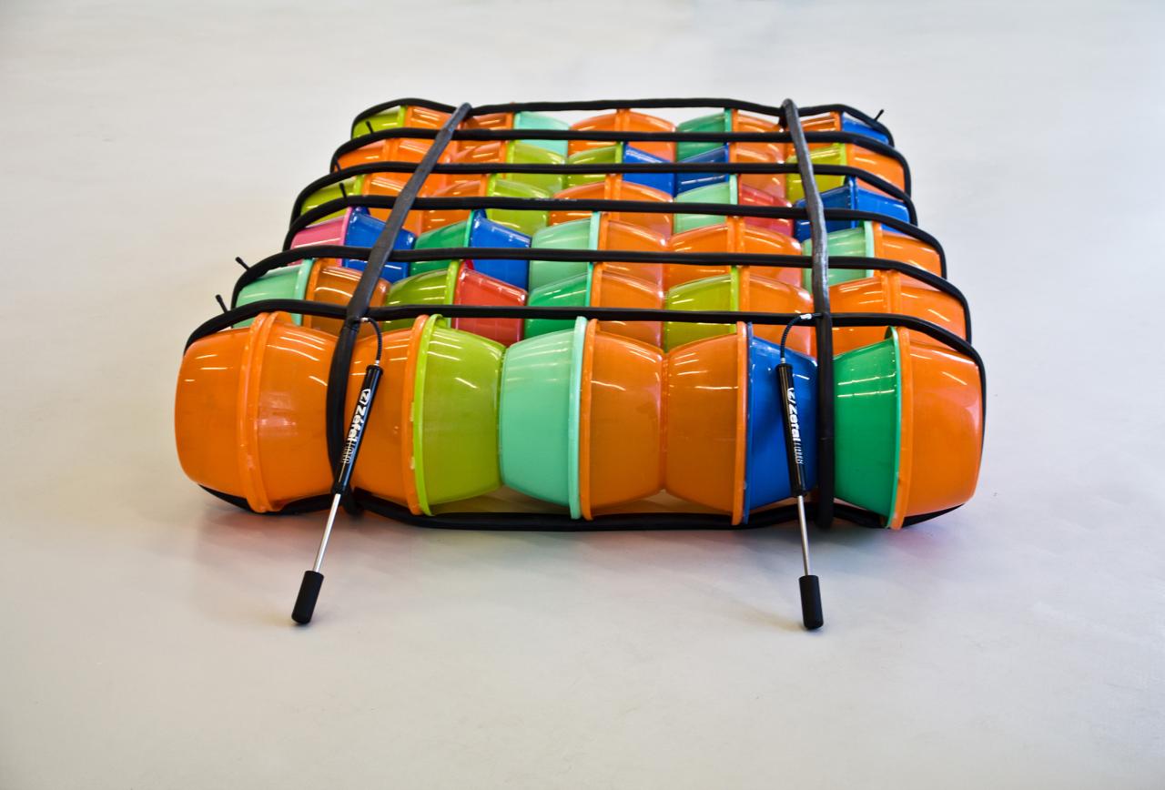 Objects occupy a central position in Tiéri Rivière’s works. Many of these depict the artist playing around with an object. The objects used are simple: a basin, a cinderblock or a sheet of corrugated iron, are all parts of a playful and intuitive plastic vocabulary that grows in time.