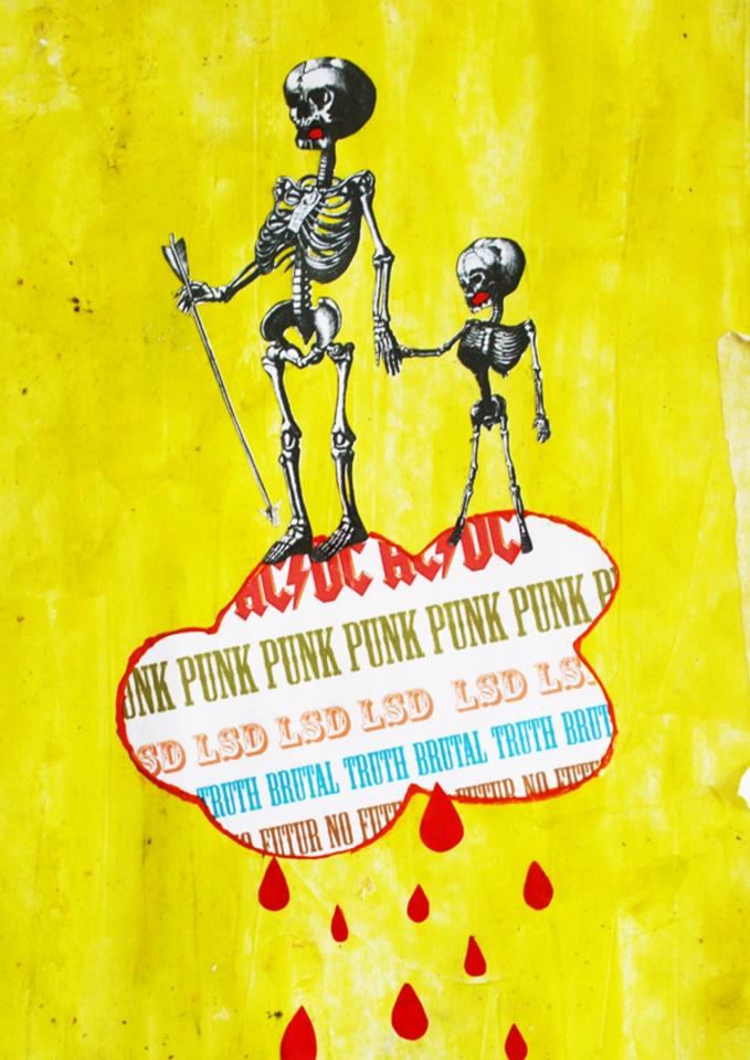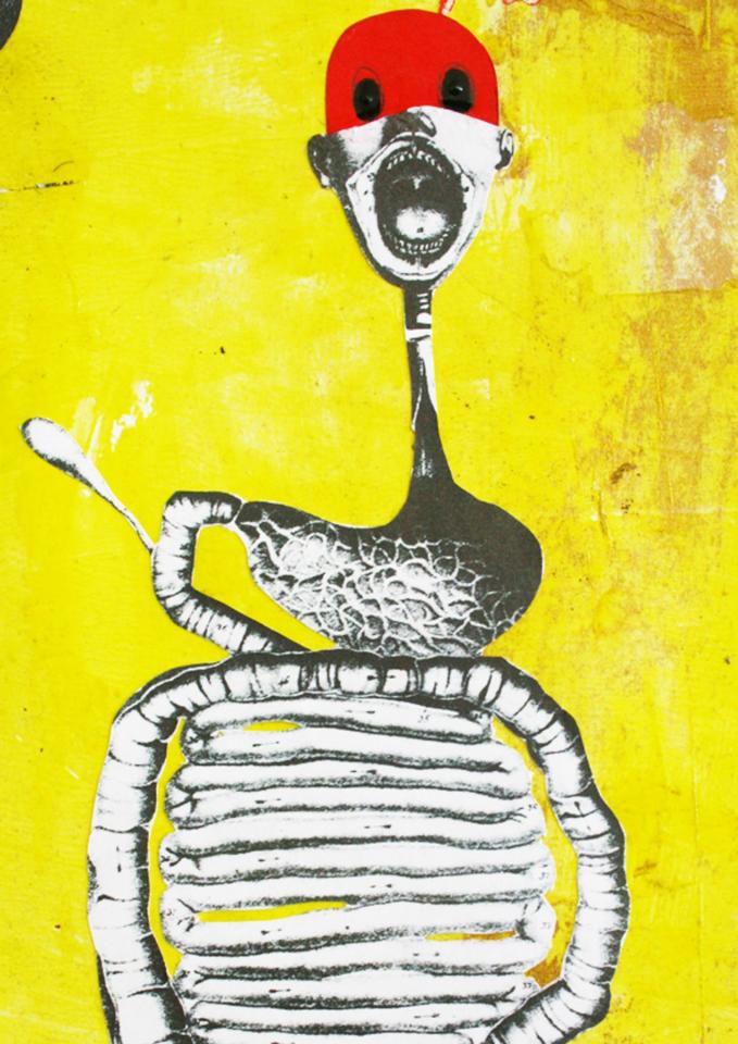 Trois formes moulées, déclinées dans des couleurs vives, mates ou brillantes, la superposition de traitements de surface (impressions, transferts d’images couleur, émaux, dessins, monotypes, dorures, écritures…) donnent une impression de rythmes et de grandes variations. Sur les mêmes surfaces se côtoient des enluminures du Moyen Âge, des signets informatiques, des incantations de tous horizons en latin, en hiéroglyphes, égyptiens ou aztèques, des slogans, des fœtus, des ingrédients de recettes magiques, des logos, des squelettes…