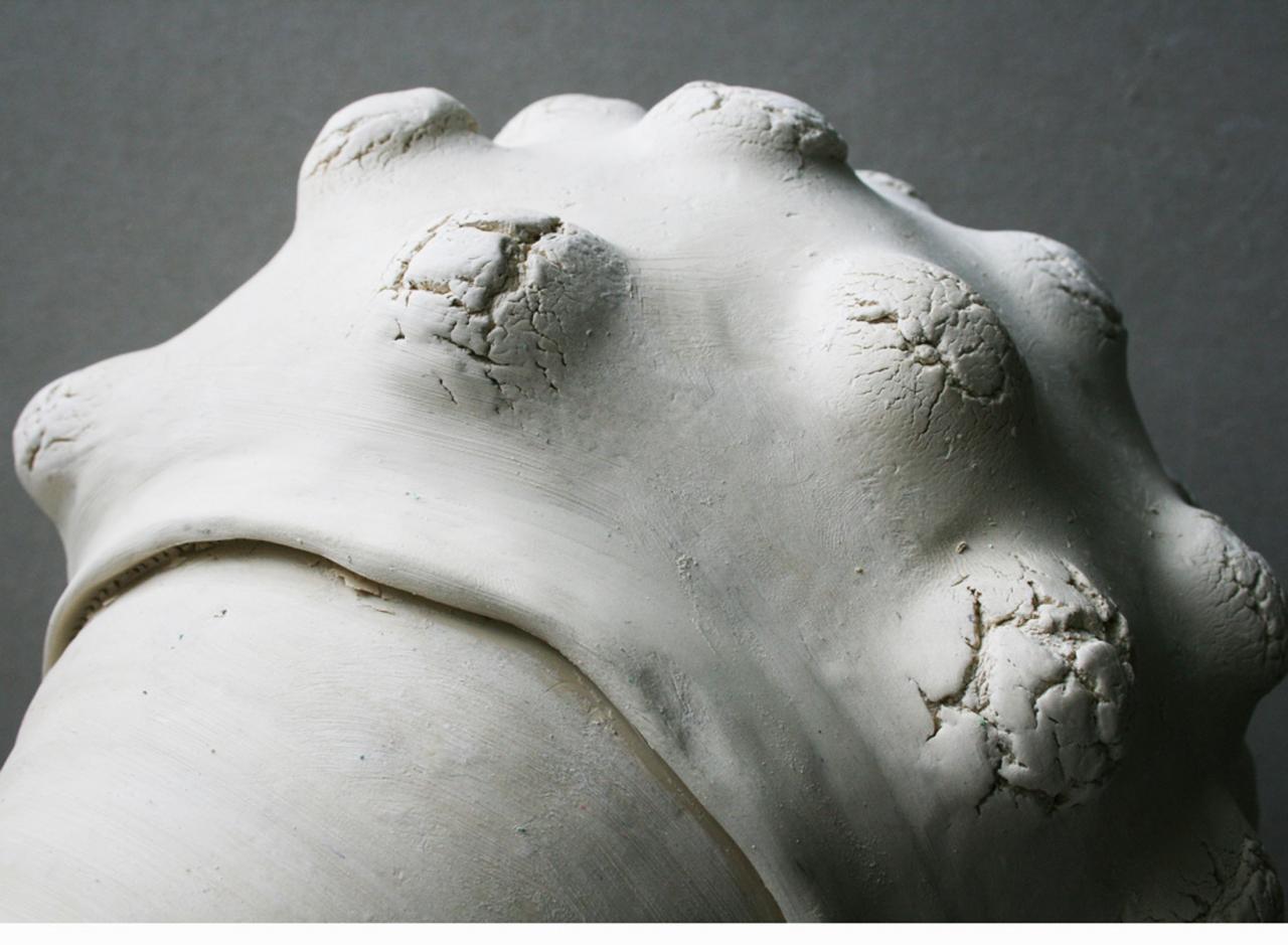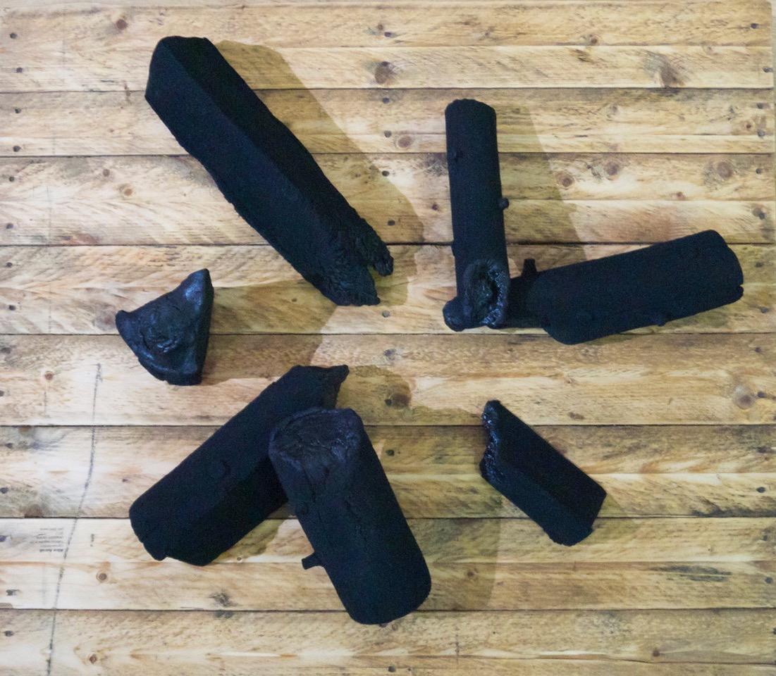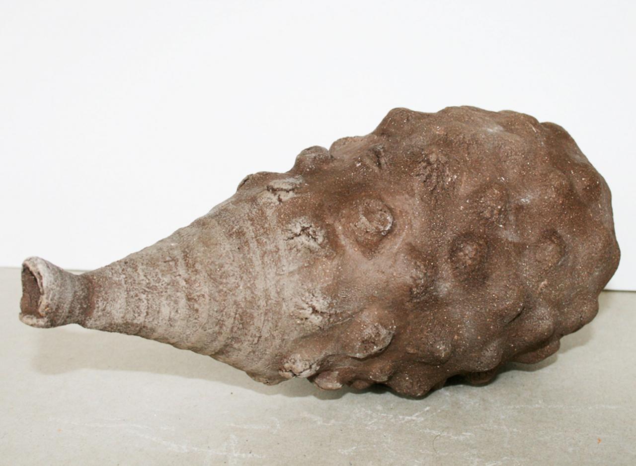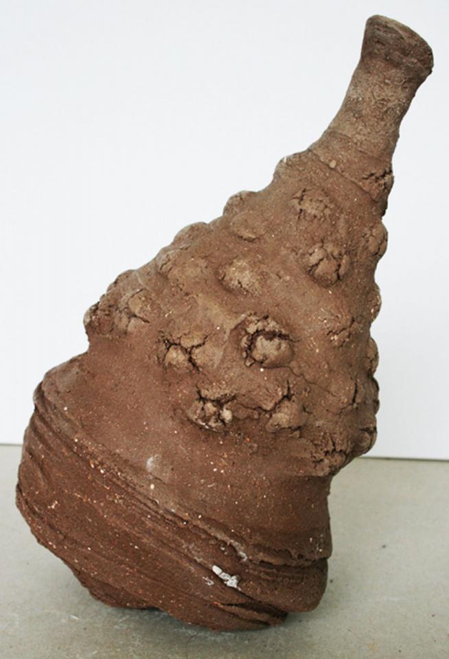 « Lors de mes récentes rencontres avec le feu des grands fours à bois, des Vosges à Shigaraki, j’ai pris conscience de l’énergie et de la magie de la transformation par le feu. C’est en jetant des bûches dans la gueule de l’anagama que cette pièce m’est apparue dans une vision nocturne. Nul besoin de longs discours pour saisir ce qui se joue : une bûche d’argile, installée comme un foyer calciné et éteint. »
