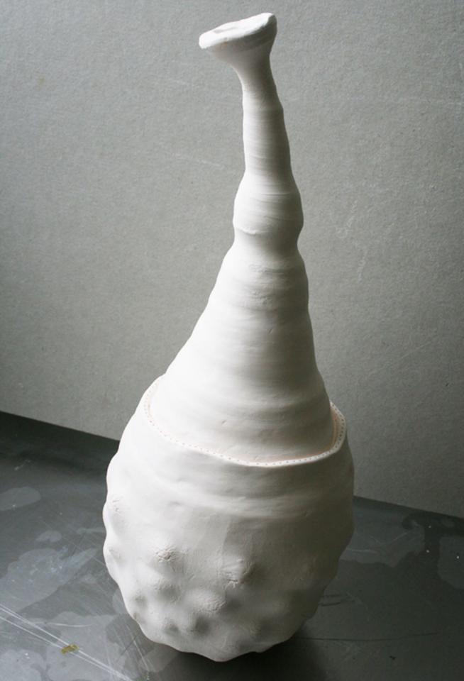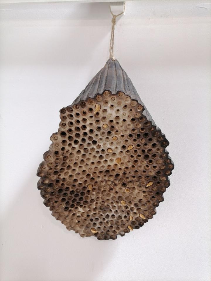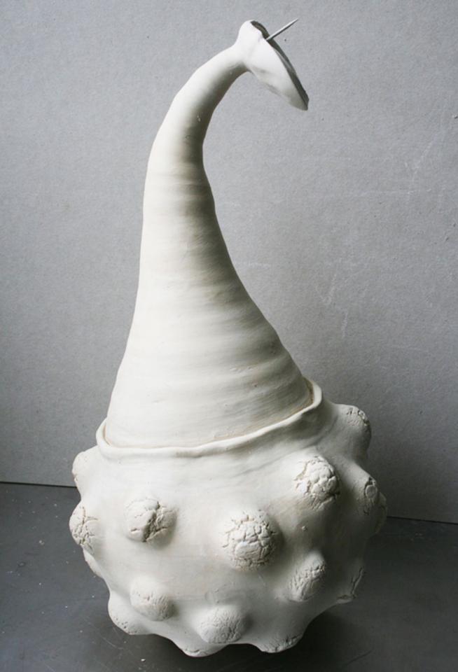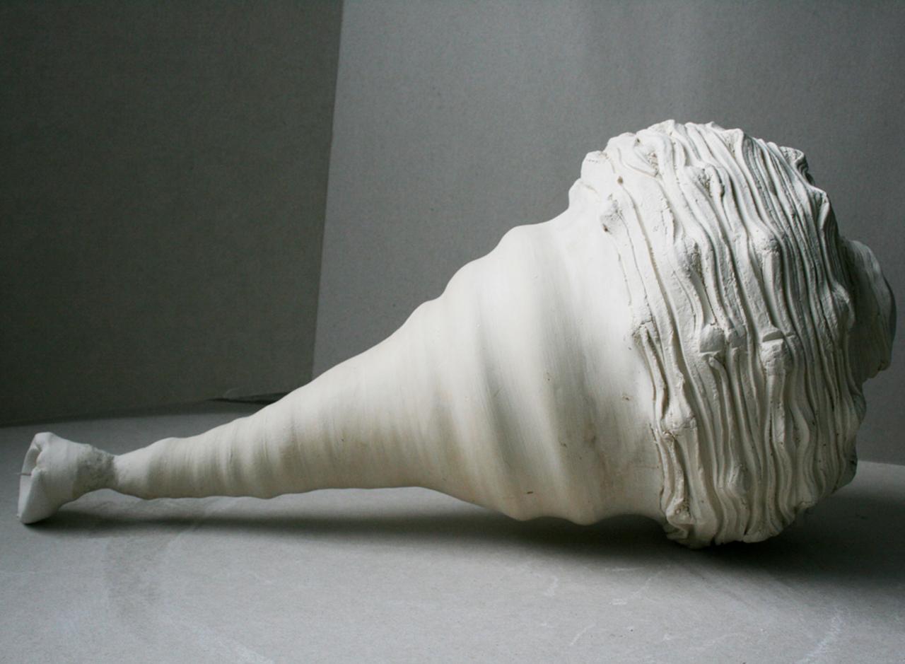 « Lors de mes récentes rencontres avec le feu des grands fours à bois, des Vosges à Shigaraki, j’ai pris conscience de l’énergie et de la magie de la transformation par le feu. C’est en jetant des bûches dans la gueule de l’anagama que cette pièce m’est apparue dans une vision nocturne. Nul besoin de longs discours pour saisir ce qui se joue : une bûche d’argile, installée comme un foyer calciné et éteint. »