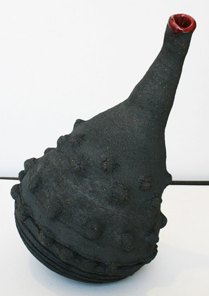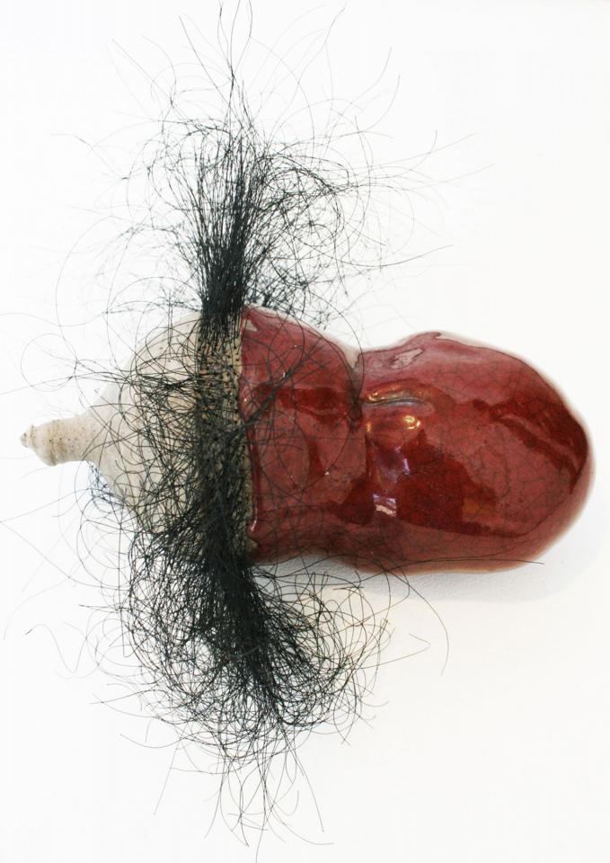 Grès émaillé, sang de bœuf, crin de chevaux, cuisson gaz, diamètre 20 cm.