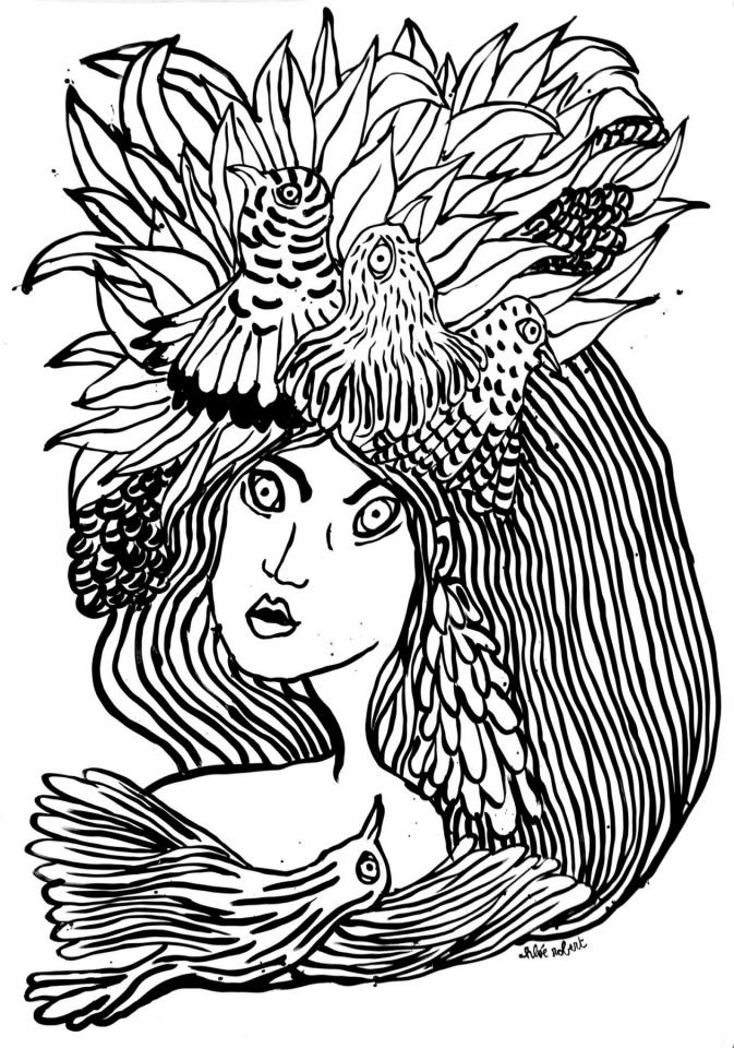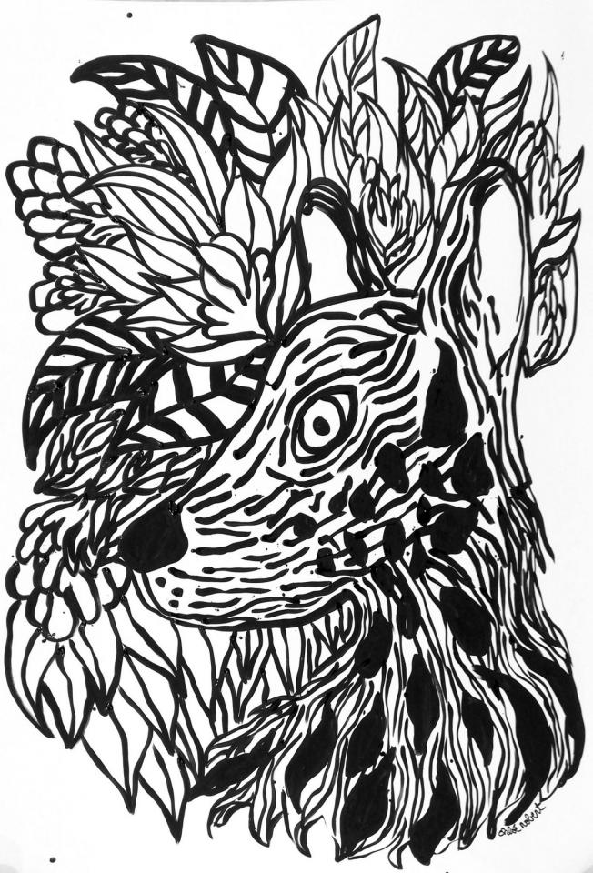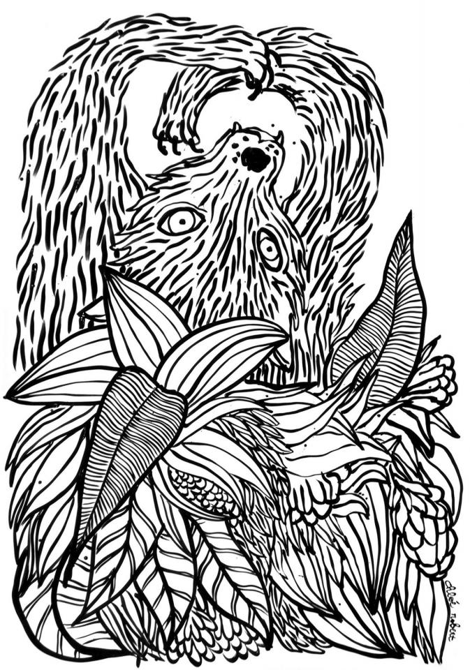 Avec une conscience écologique, elle dessine des animaux qui ne vivent pas à La Réunion, elle en fantasme les corps et les attitudes. Ce sont aussi des chimères, des yōkai qui peuplent d’autres dimensions du réel. »