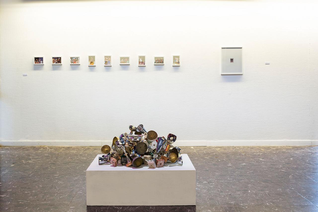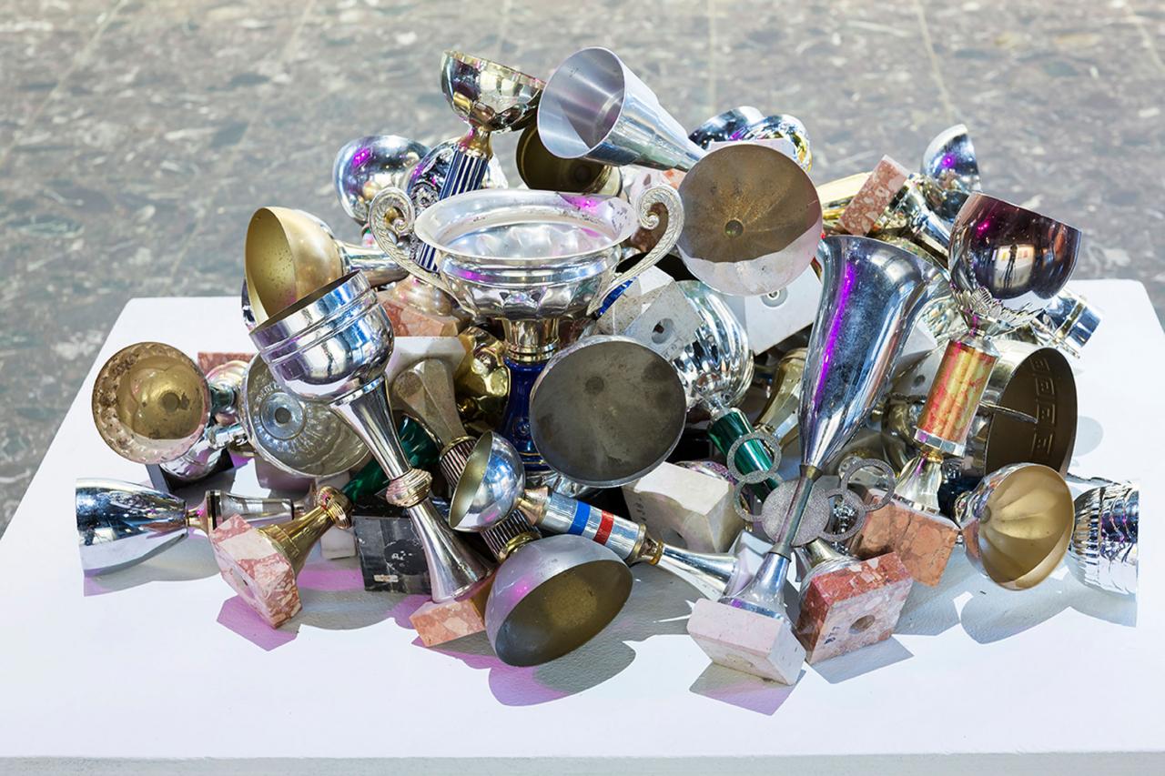 Installation, trophées en marbre et plastique, dimensions variables.