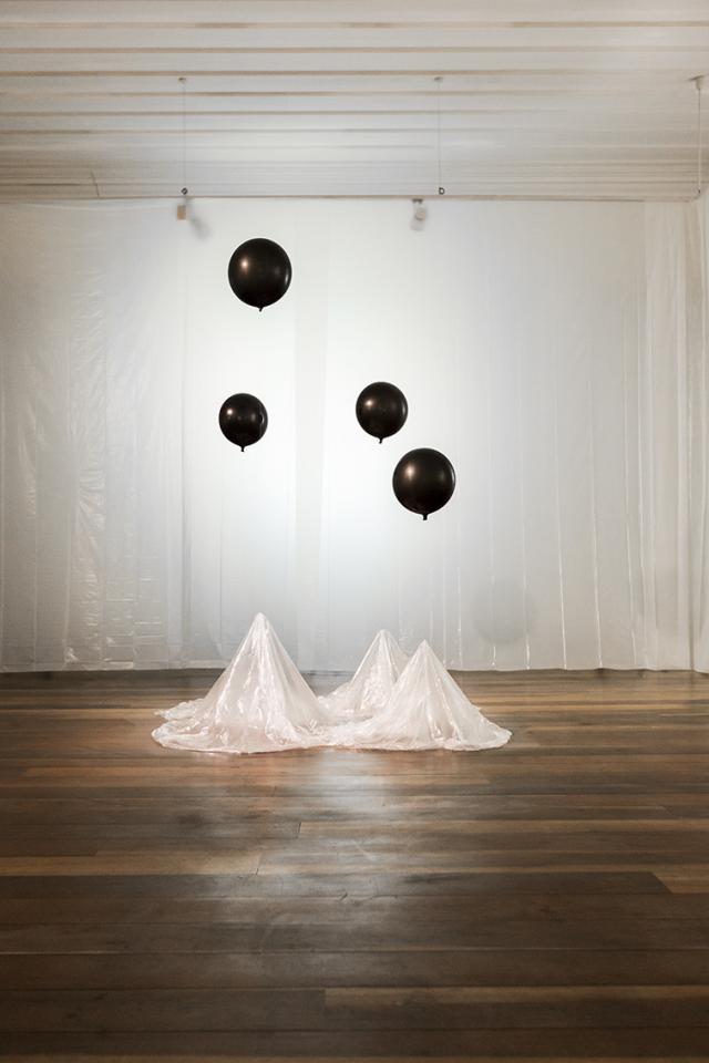 Exposition collective La nuit égarée, commissariat Camille Touzé, scénographie Clément Striano, Cité des arts, Saint-Denis, La Réunion, 2017.