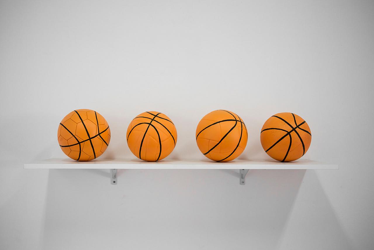 Rares sont les artistes qui conjuguent l’art au sport, ou inversement. Clément Striano a fait du foot, de la boxe et du basketball américain un terrain de jeu et de pensée. À l’école d’art du Port, alors qu’il se spécialise dans le design, il fabrique dans une salle un terrain de basket avec les moyens du bord. Une première expérience qui va le mener vers le projet Dunkorama(2017 – en cours). Il s’agit d’une fiction plastique dans laquelle l’artiste déploie le récit d’un joueur de basket : Clément Striano. Pensé comme un anti-héros, le mec qui reste toujours sur le banc des remplaçants, le looser persévérant, Clément Striano est devenu le premier joueur réunionnais à avoir intégré la NBA dans les années 1980. Un joueur méconnu du grand public, qui a pourtant été recruté dans plusieurs équipes prestigieuses : « Orlando Magic, une de ses premières saisons en NBA. Il côtoie Shaquille O’Neal pendant quelques mois, une expérience qui le marque / Hawks d’Atlanta, il y passe deux ans, c’est là où son jeu devient plus offensif / Denver Nuggets, c’est avec cette franchise qu’il réalise son record personnel de points dans un match /- Detroit Pistons, c’est dans cette équipe qu’il passe le plus de temps. C’est un peu comme chez moi, affirme-t-il. Il fait partie du renouveau de cette équipe. C’est avec les Pistons qu’il fait sa seule finale de Conférence-Est / Toronto Raptors, il est présélectionné pour les All-stars Games, après une première partie de saison où il fait la différence à plusieurs reprises. Malheureusement pour lui Tayshaun Prince a plus de votes que lui et donc lui prend la place qu’il espérait. »