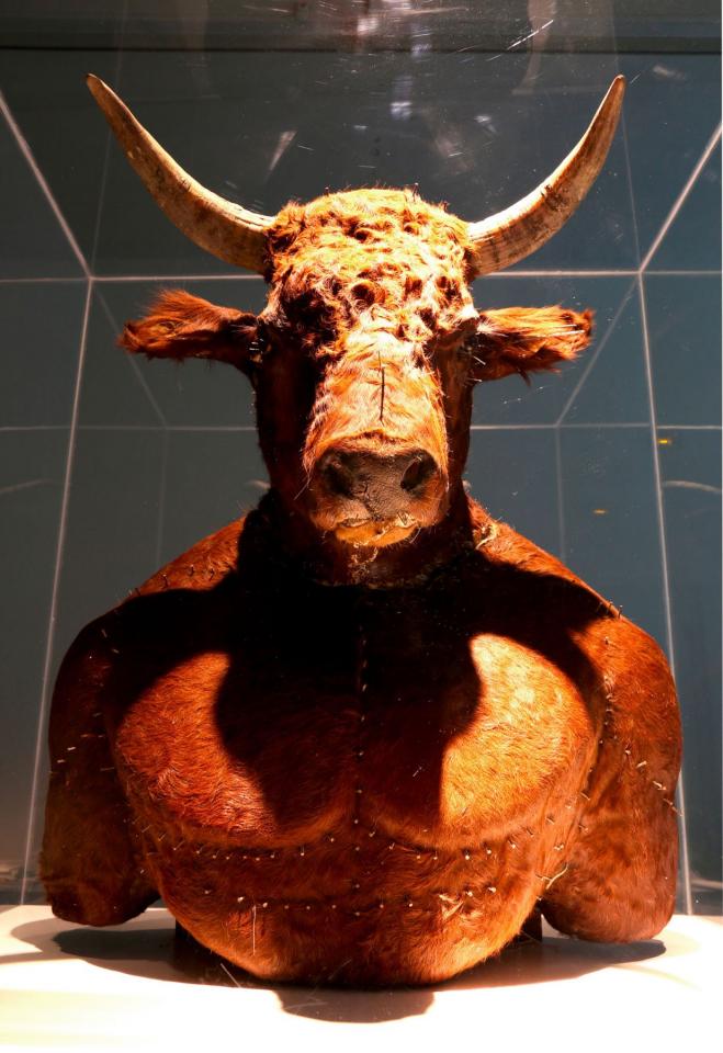 Dans la pièce qui nous concerne, le Minotaure, hybride sacré, surgit dans une île dont les racines culturelles s’étendent au delà des océans et convergent vers des rituels anciens : Minotaure, homme-taureau, mi-dieu, mi-créature terrestre, vecteur d’un message entre la terre et le ciel, entre la vie et la mort. Les clous plantés dans sa peau lors du processus de taxidermie semblent aller de soi. Métalliques, ils s’imposent et résonnent à travers le temps. Destructeurs, ils rappellent les clous présents sur les fétiches d’Afrique de l’ouest. Rédempteurs, ils évoquent les aiguilles que les pénitents se piquent dans la peau en signe de mortification lors de la cérémonie tamoule du Kavadi. Figure incarnée du sacrifice, il nous regarde et attend - tel l’Astérion de Borgès (1977) - impavide et en silence, son rédempteur.