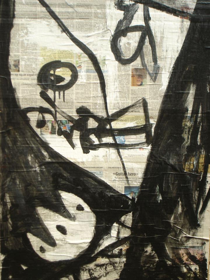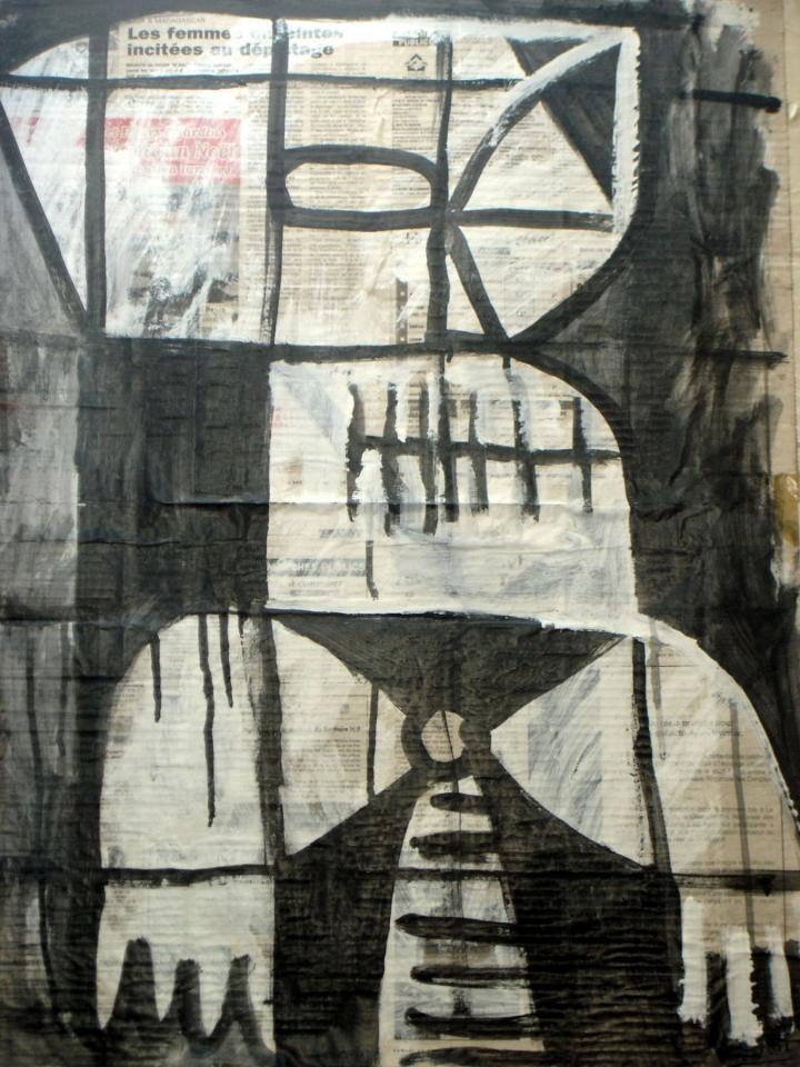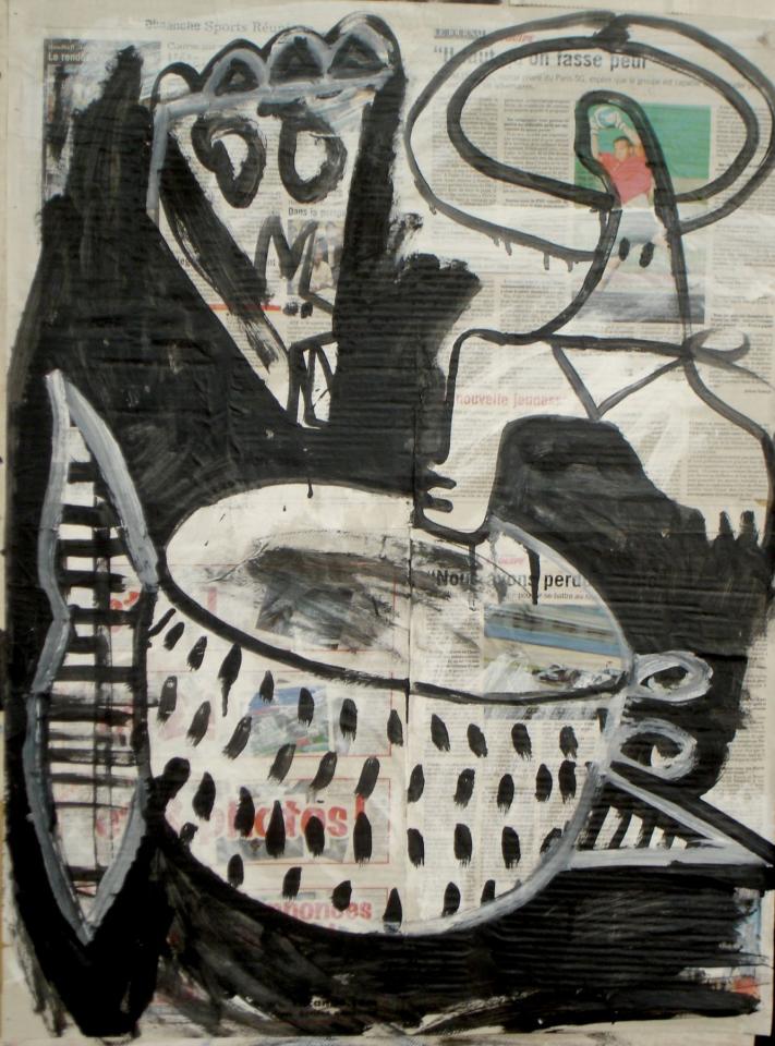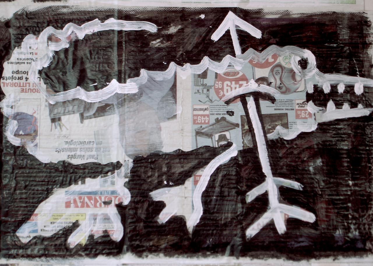 Acrylique sur papier journal, 41 x 58 cm.