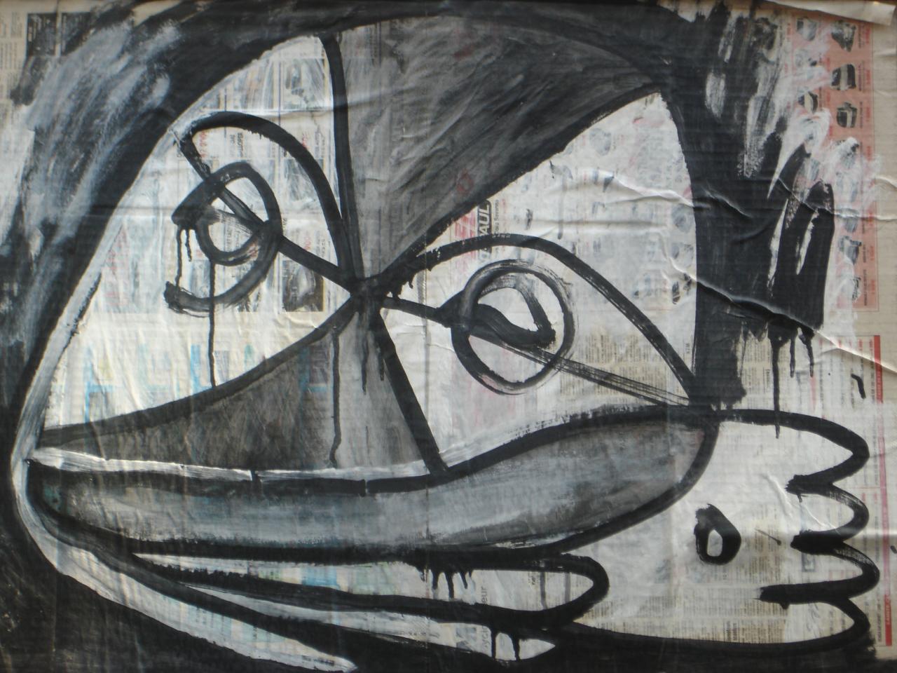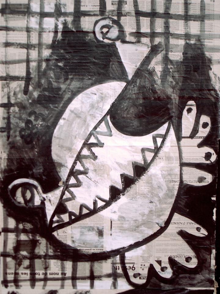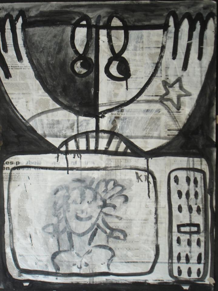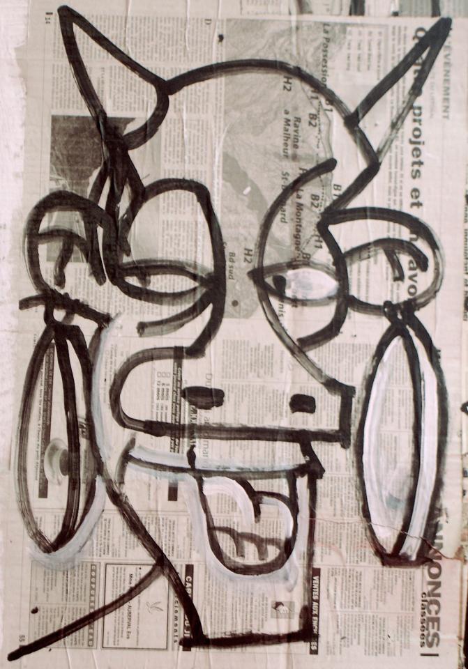 Acrylique sur papier journal, 41 x 58 cm.