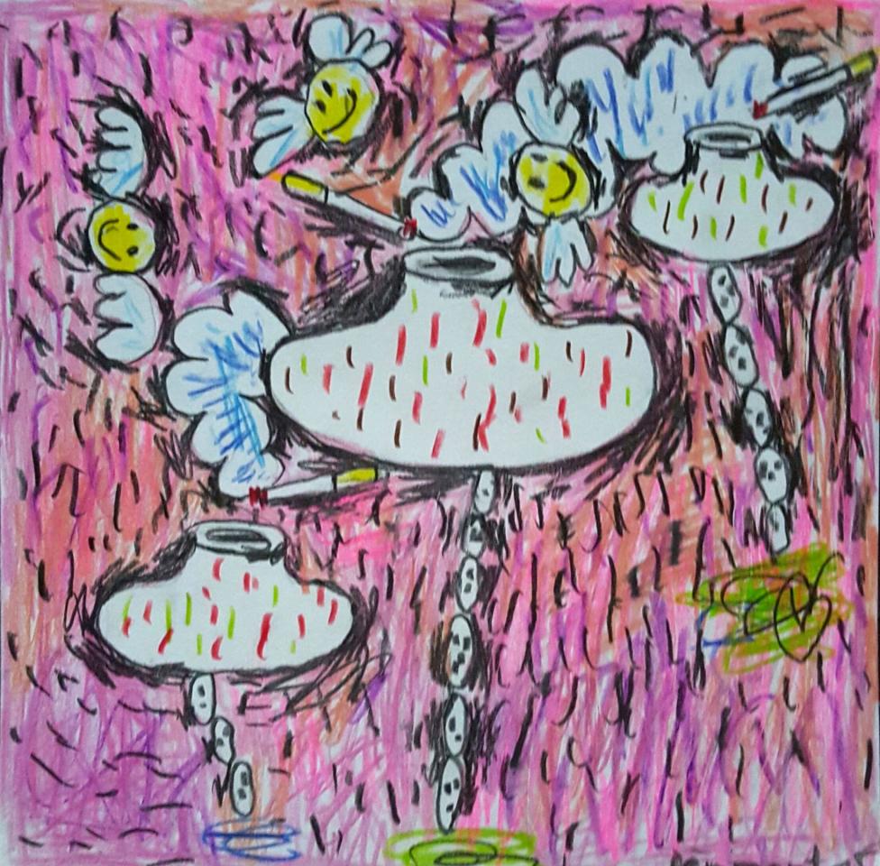 Crayons de couleur sur papier, 20 x 20 cm.