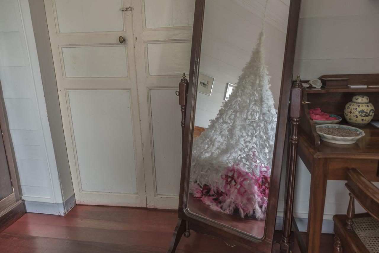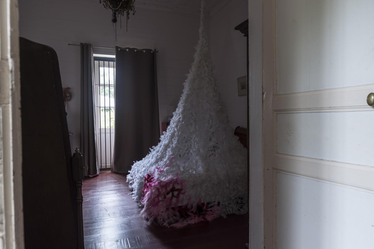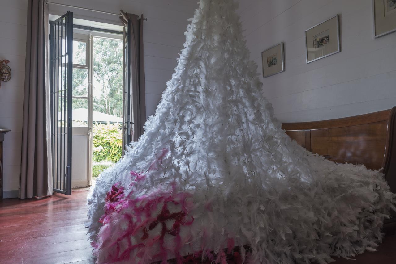 Filet de lit Filet de lit, 2021Installation, fil et plumes naturelles, dimensions variables.Domaine de Beaubassin, Saint-Denis, La Réunion.Photographies © Osman Badat Chargement Artistes publications rencontres à propos Rechercher œuvres dans l'espace public Inscription à la newsletter fr en Ou par filtre Médiums Thématiques Rechercher Nouvelle recherche