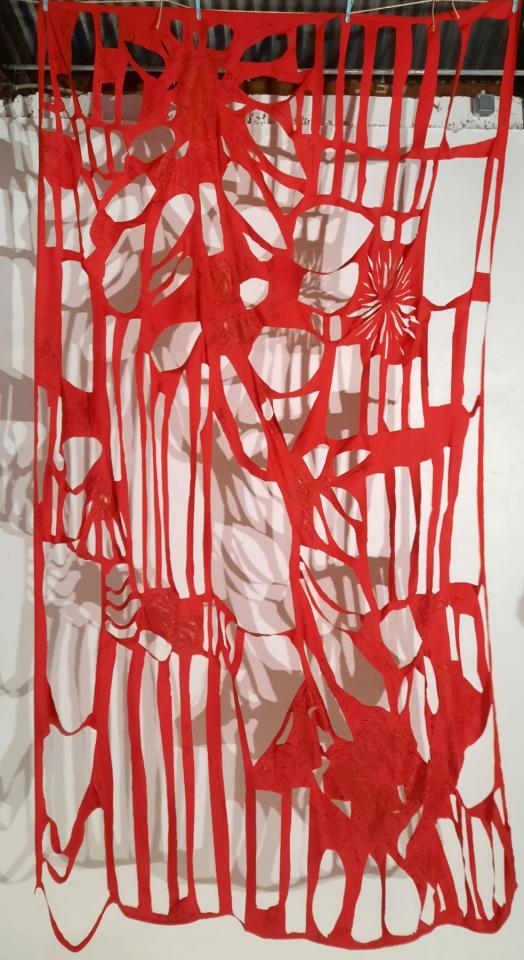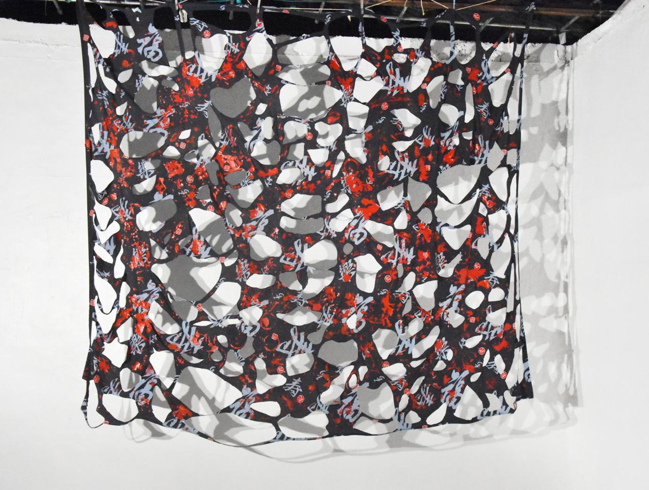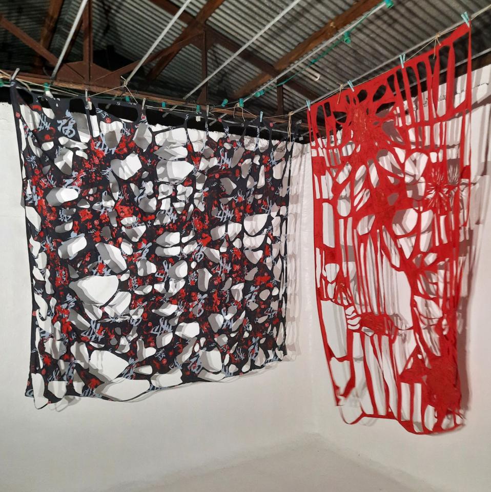 Installations, peinture acrylique et découpe sur drap.