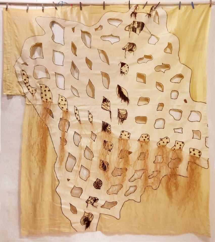 Gesso, découpes et nœuds sur tissu