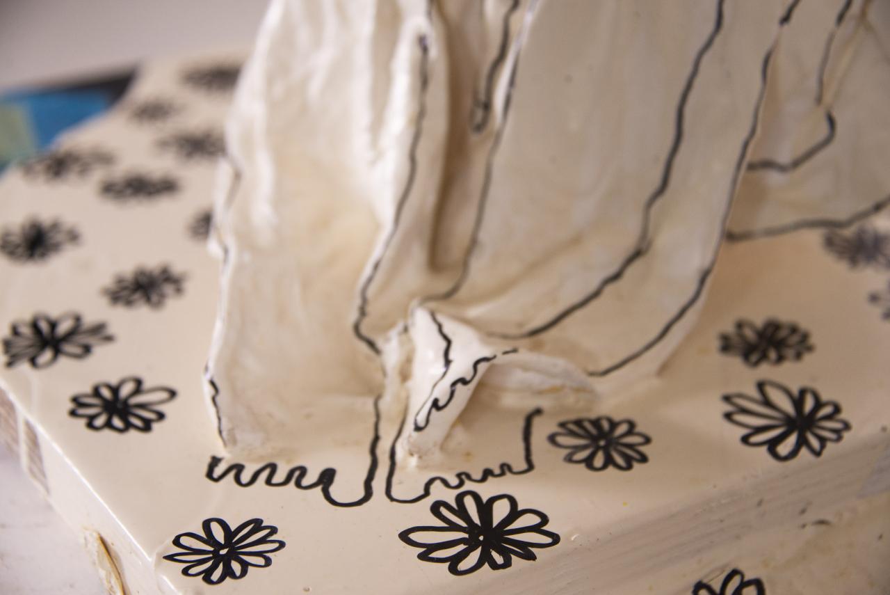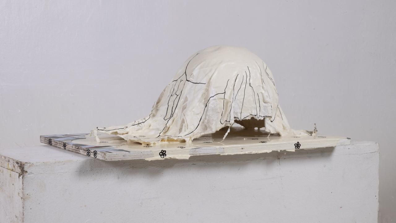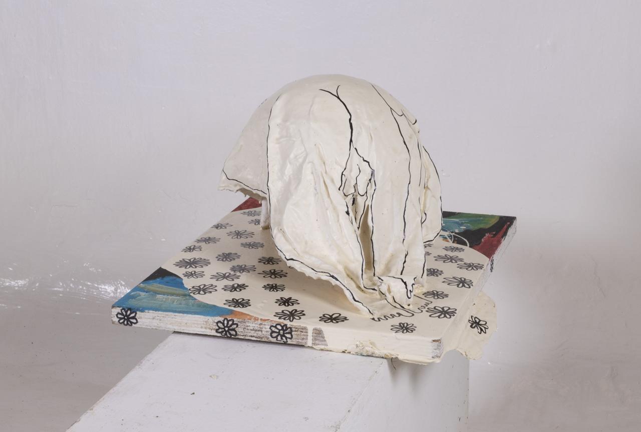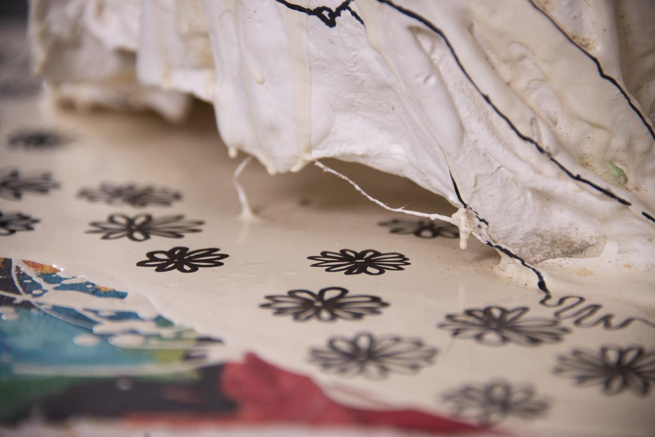 Peinture acrylique, peinture vernissée, stylo feutre, colle sur tissu imprégné et formé, bois.