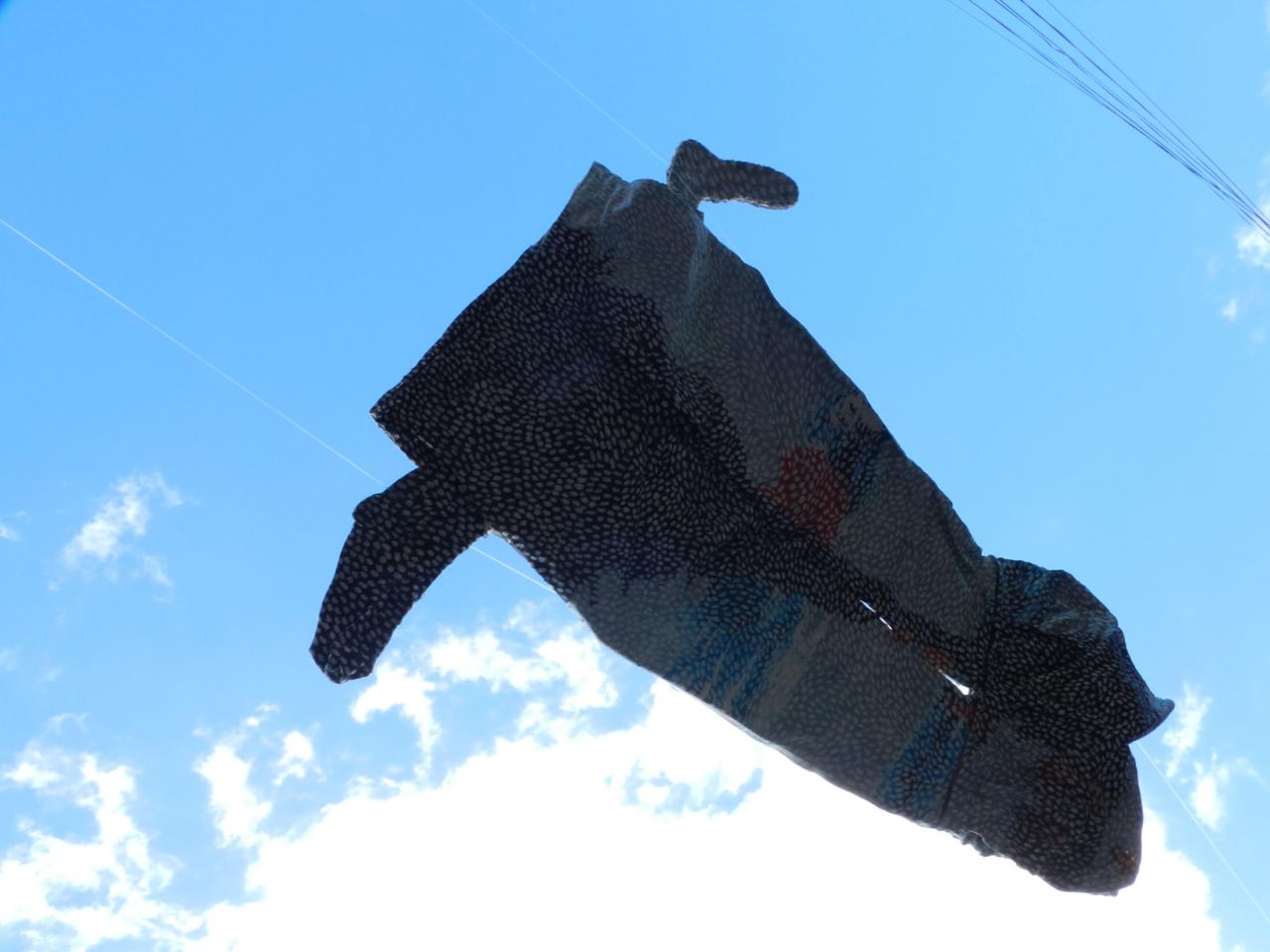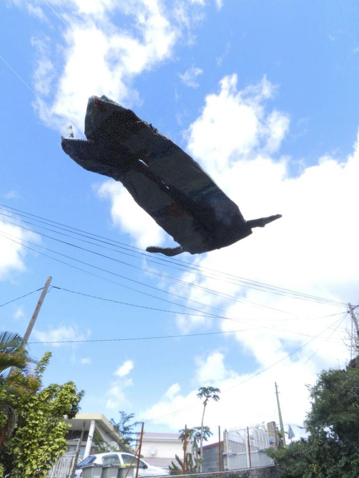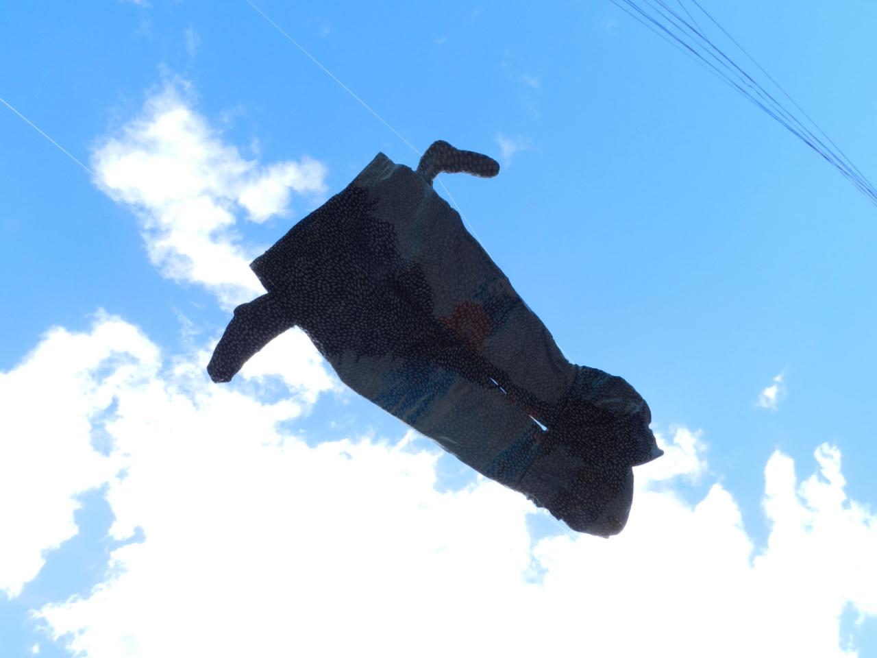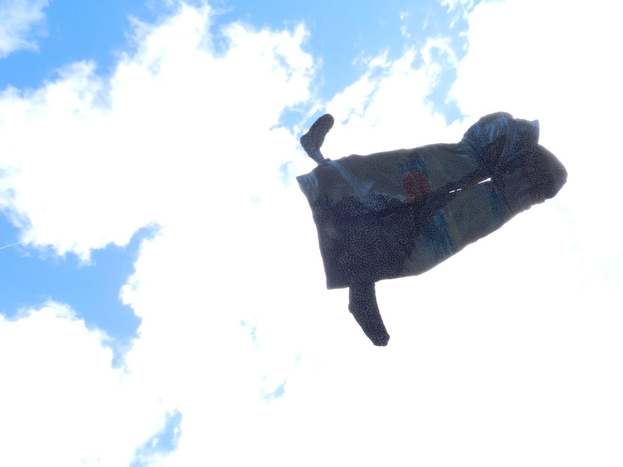 Mise en scène de la série de sculptures textiles Des anges volent (vêtements ayant été portés, entiers, pliés – appartenant à l’artiste et à ses proches – cousus entre eux, armés par du fil de fer galvanisé, en partie peint).