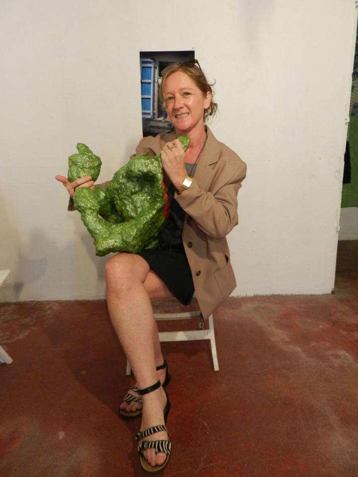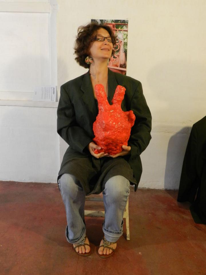 Les objets proposés s’appellent des trésors. Ils sont faits d’une drôle de matière plastique, couverte de peinture vive, luisante, travaillée dans la chair. Ils invitent à la mise en bouche, au léchage, au pétrissage. On les porte à bras, comme des bébés. La matière enveloppe des objets bizarres. Des objets du bonheur. Du bonheur épuisé, resucé, perdu, celui des proches de Ficot.