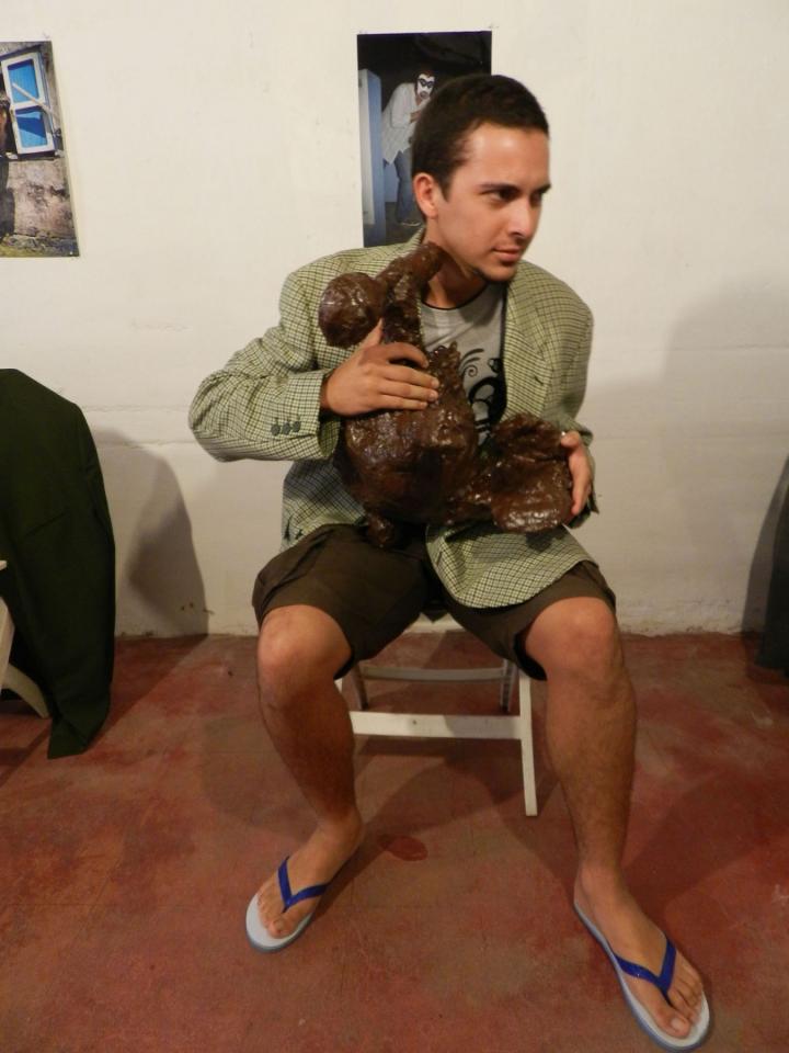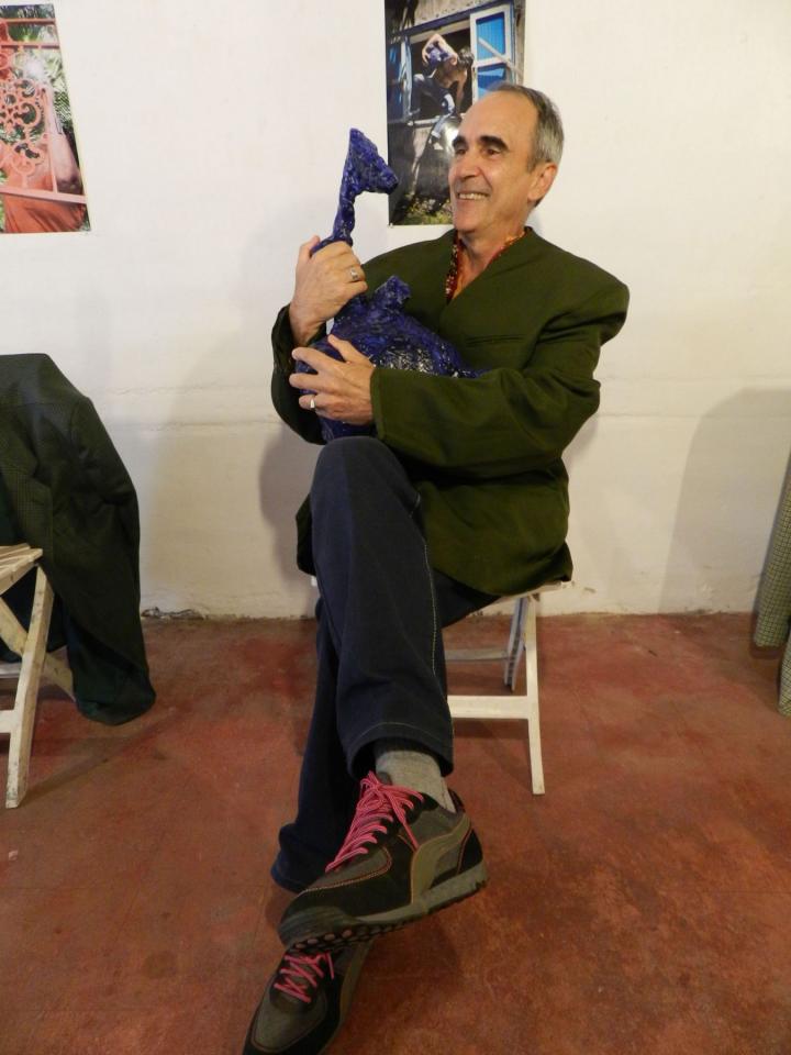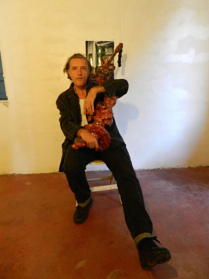 « C’est une veillée ludique qui ne s’embarrasse pas du défunt. On y trouve des vestes rigides, dernières acquisitions de l’artiste. Vous pouvez les acheter pour une somme modique.