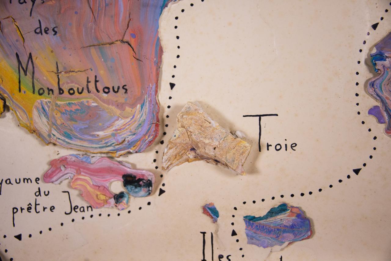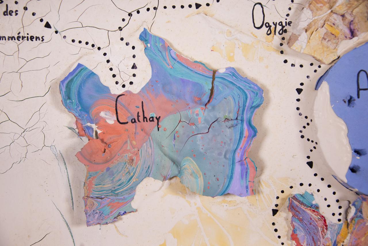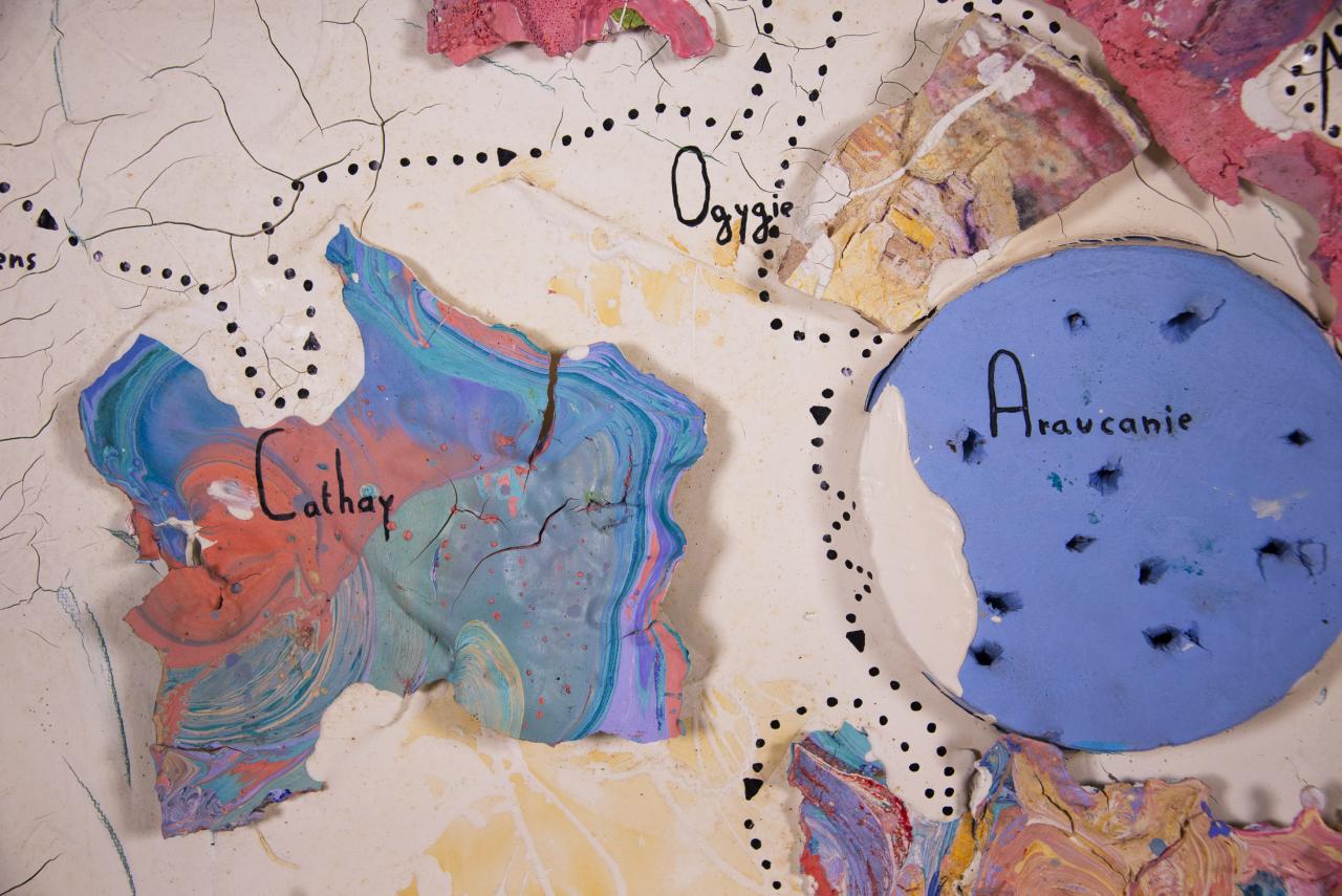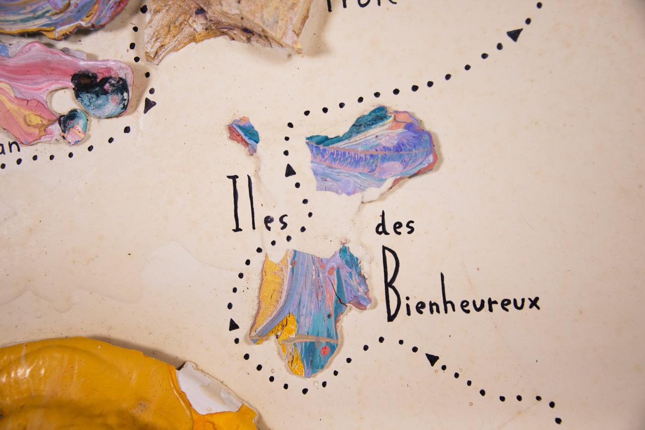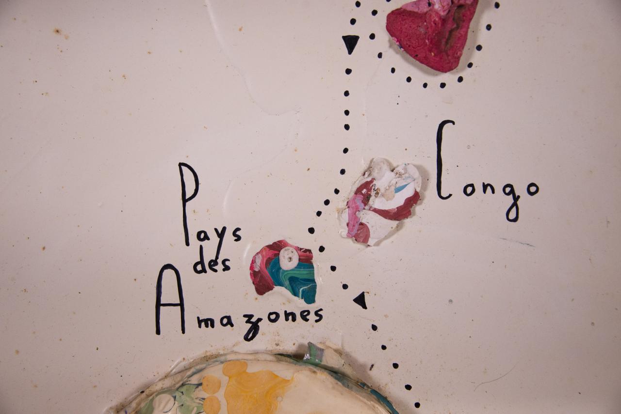 Acrylique, stylo feutre, restes de peintures séchées, 61,5 x 50 cm.