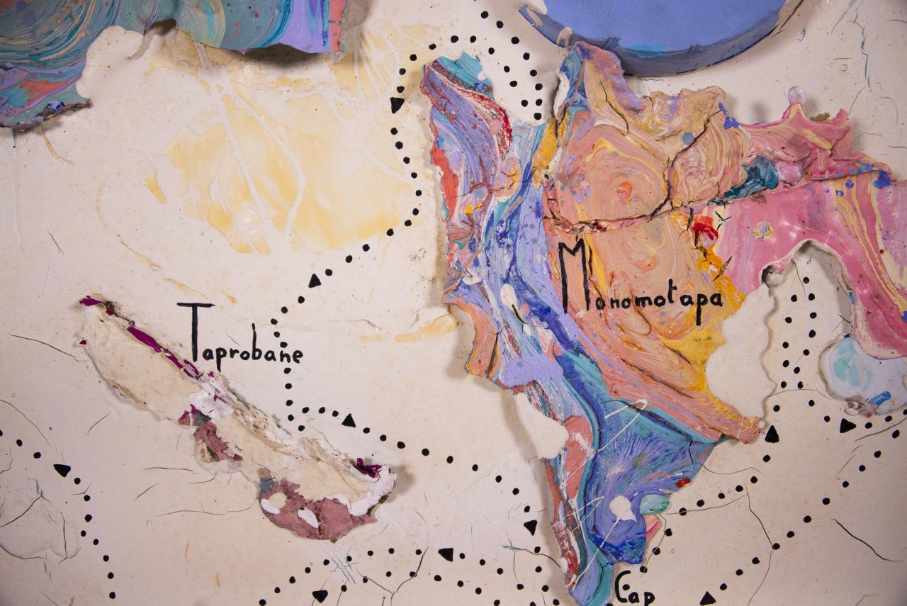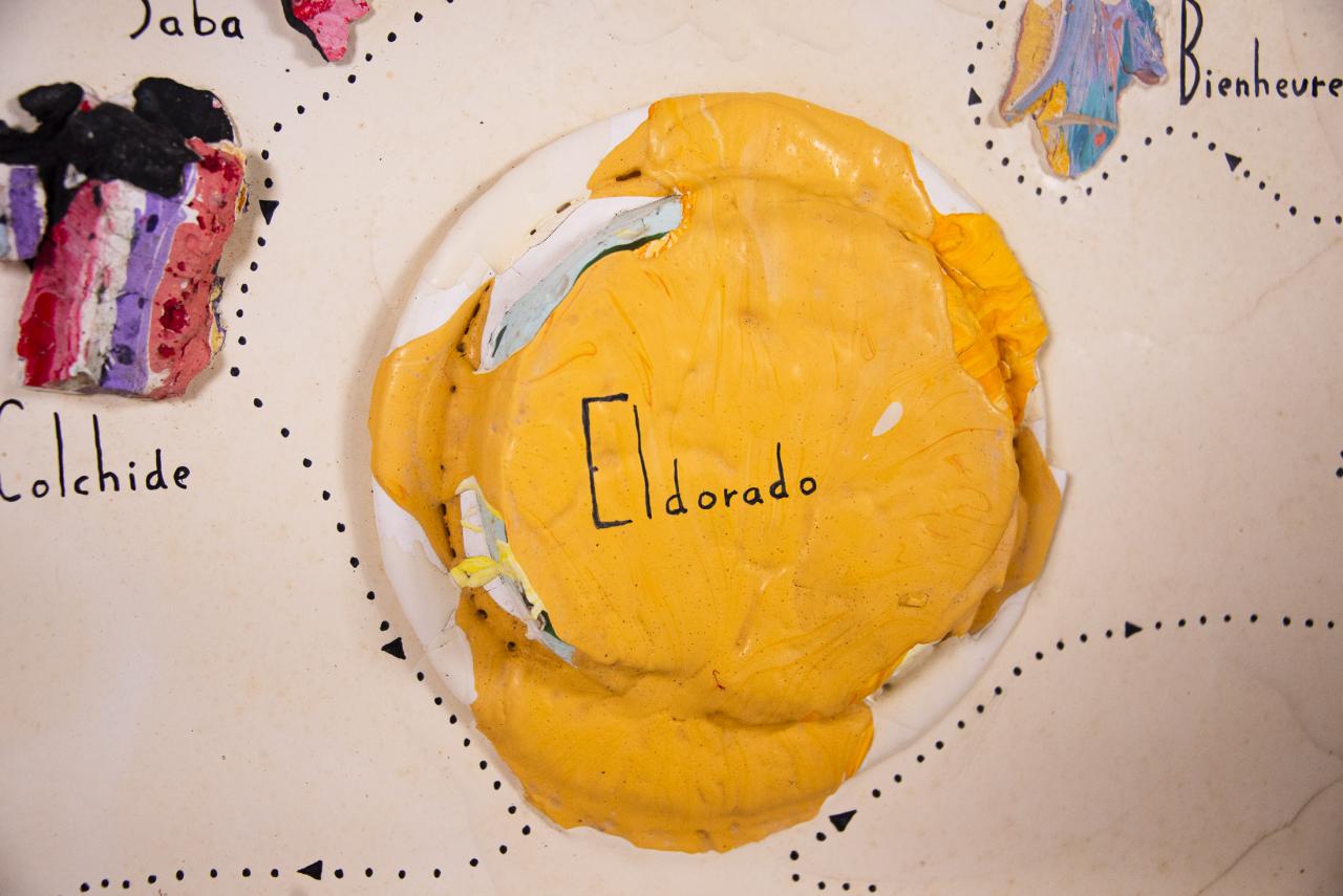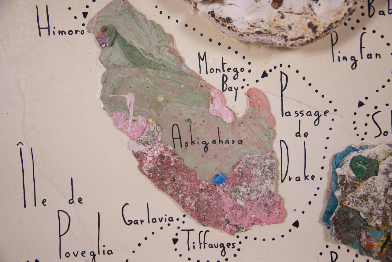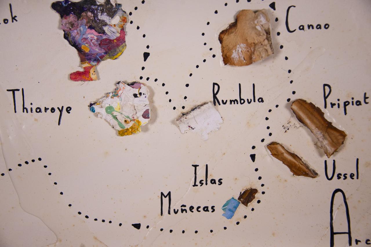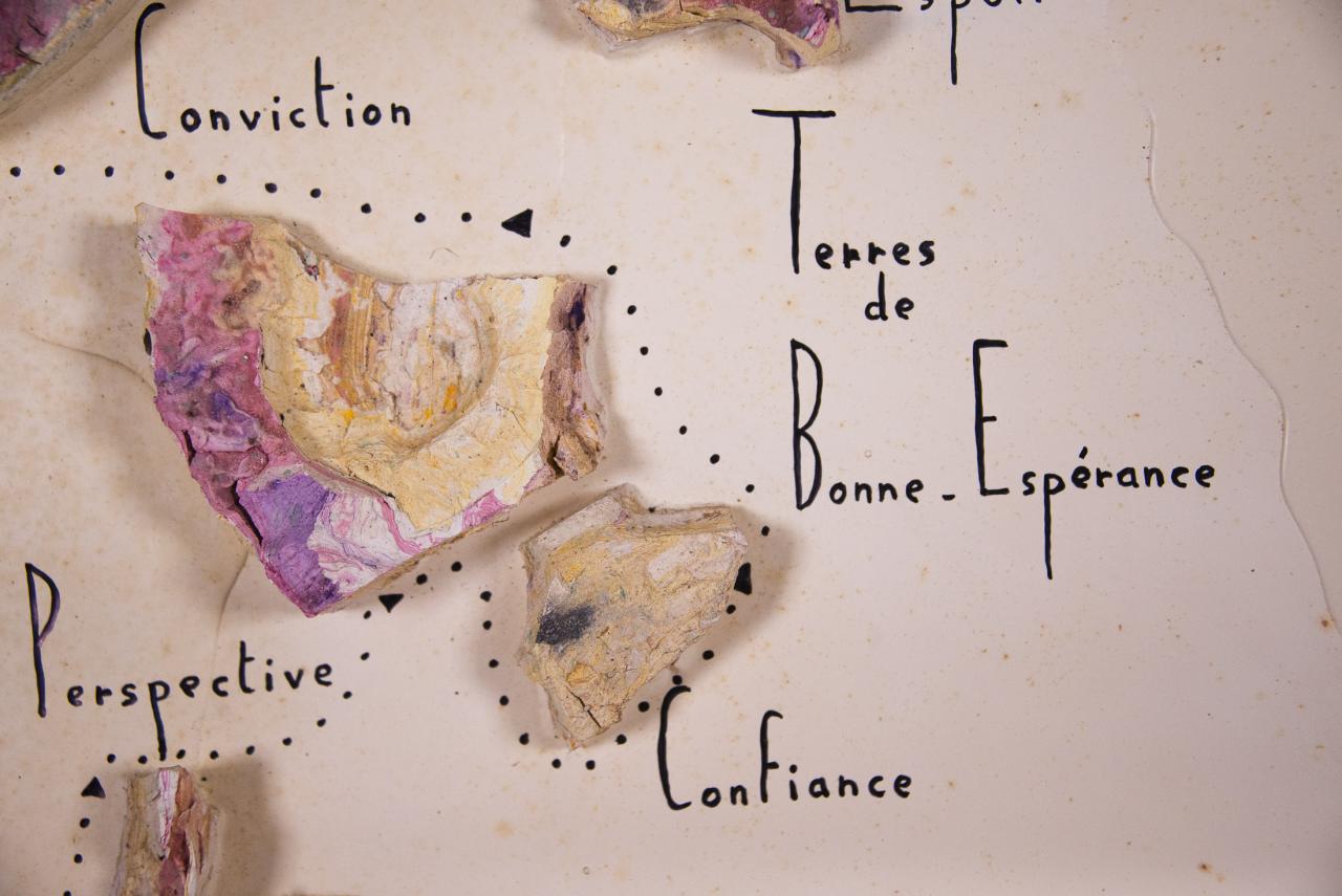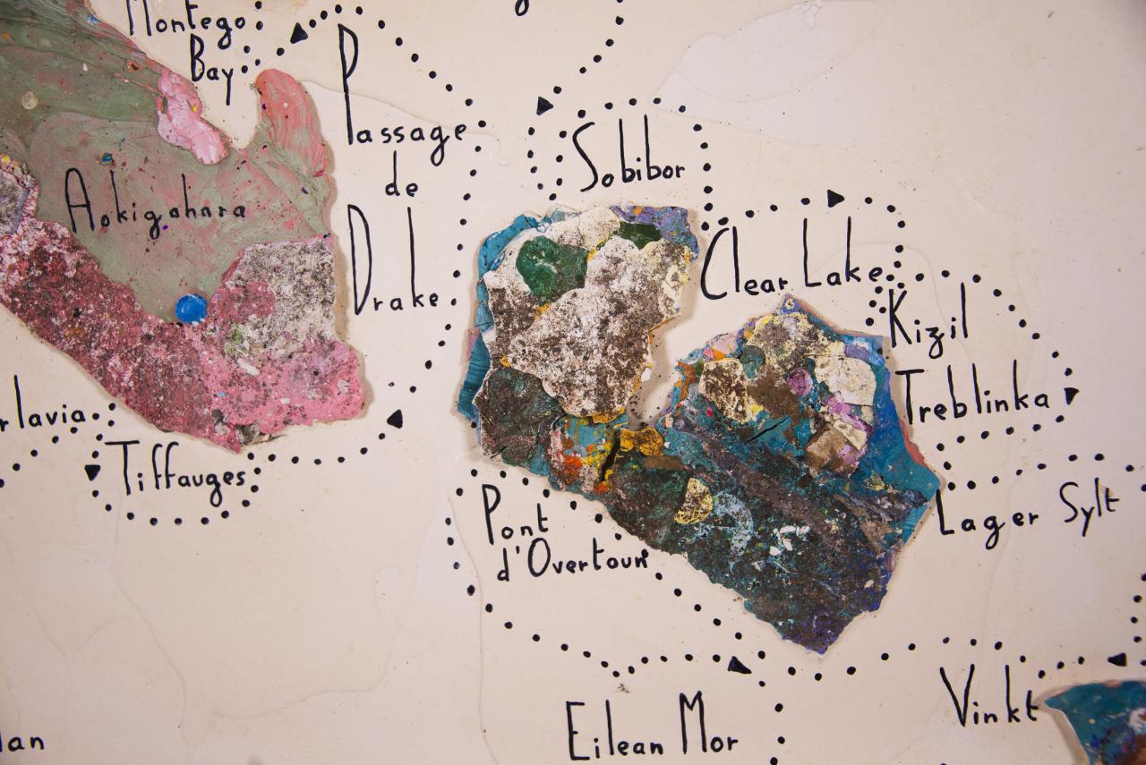 Acrylique, stylo feutre, restes de peintures séchées, 61,5 x 50 cm.