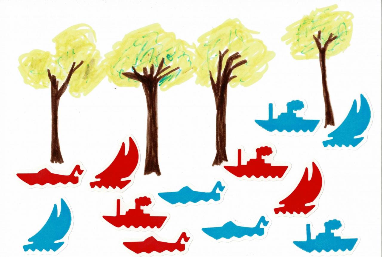 Stylo feutre, gommettes sur papier bristol, 21 x 14,8 cm.