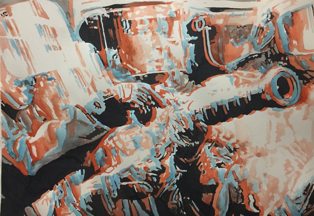 Série de dessins, gouache et encre sur papier.