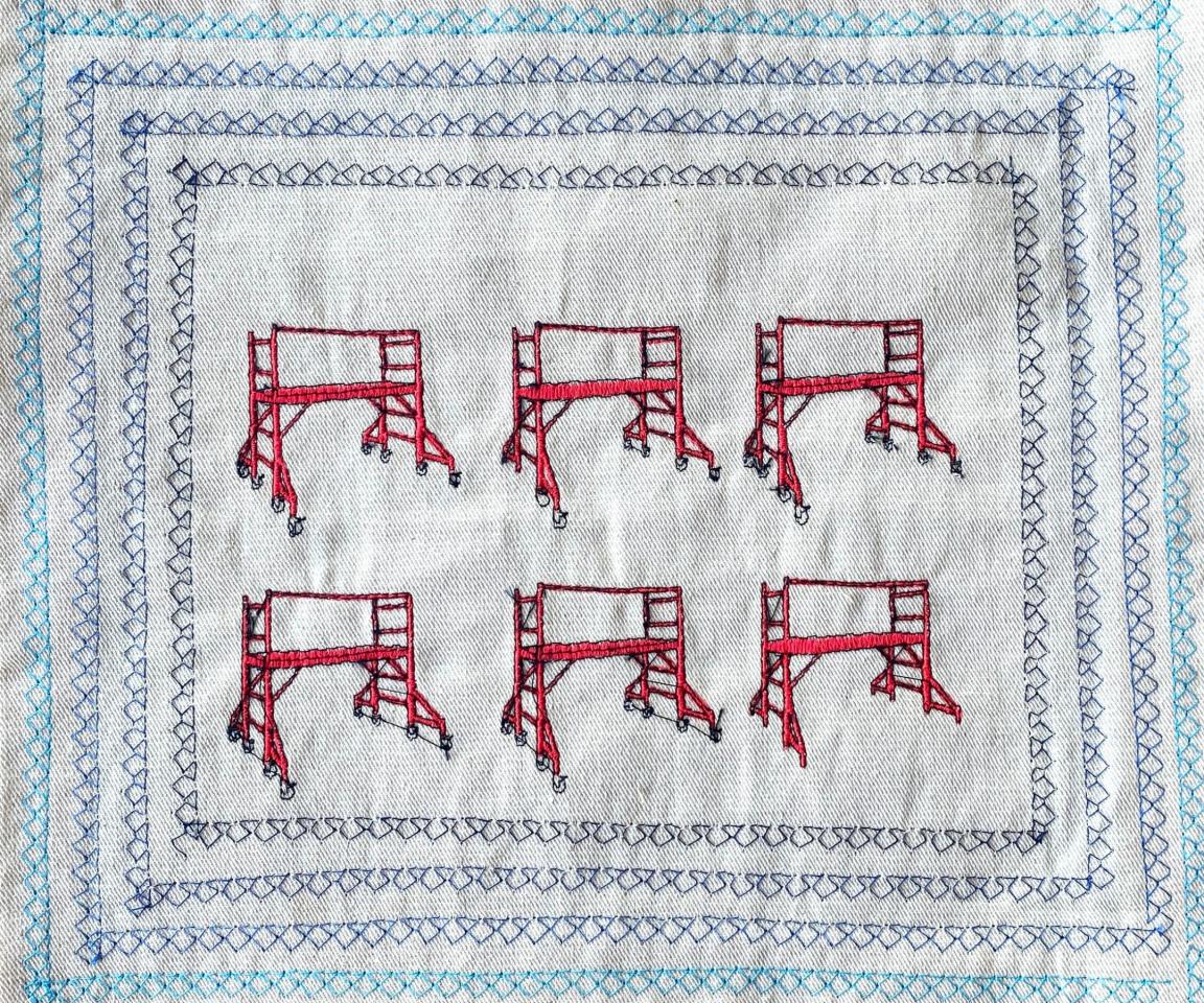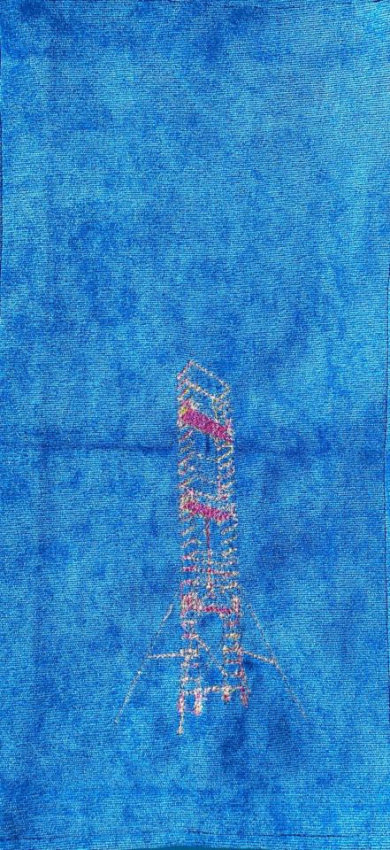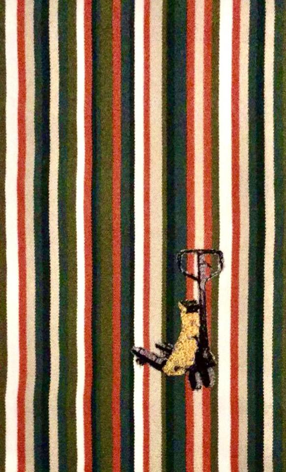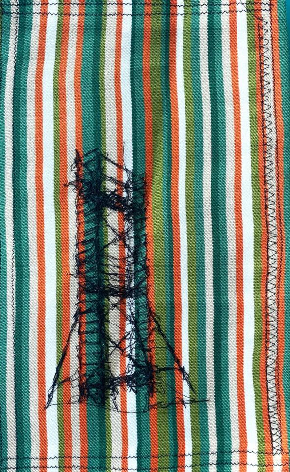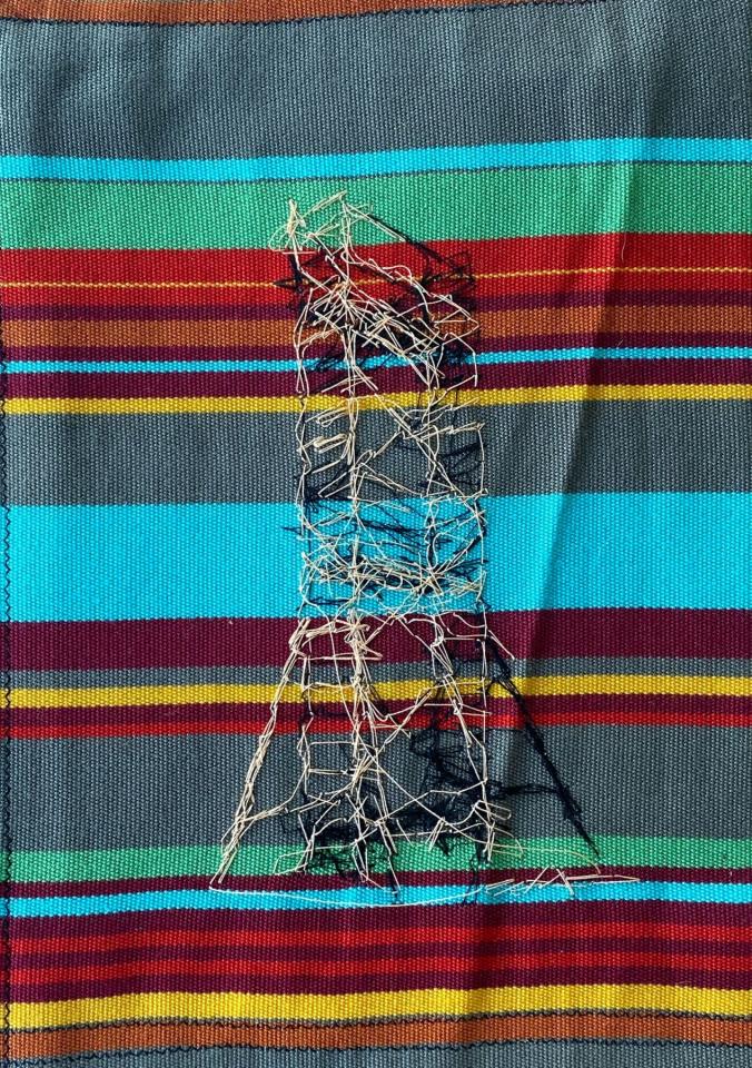 Broderie sur tissu bayadère, 25 x 15 cm.