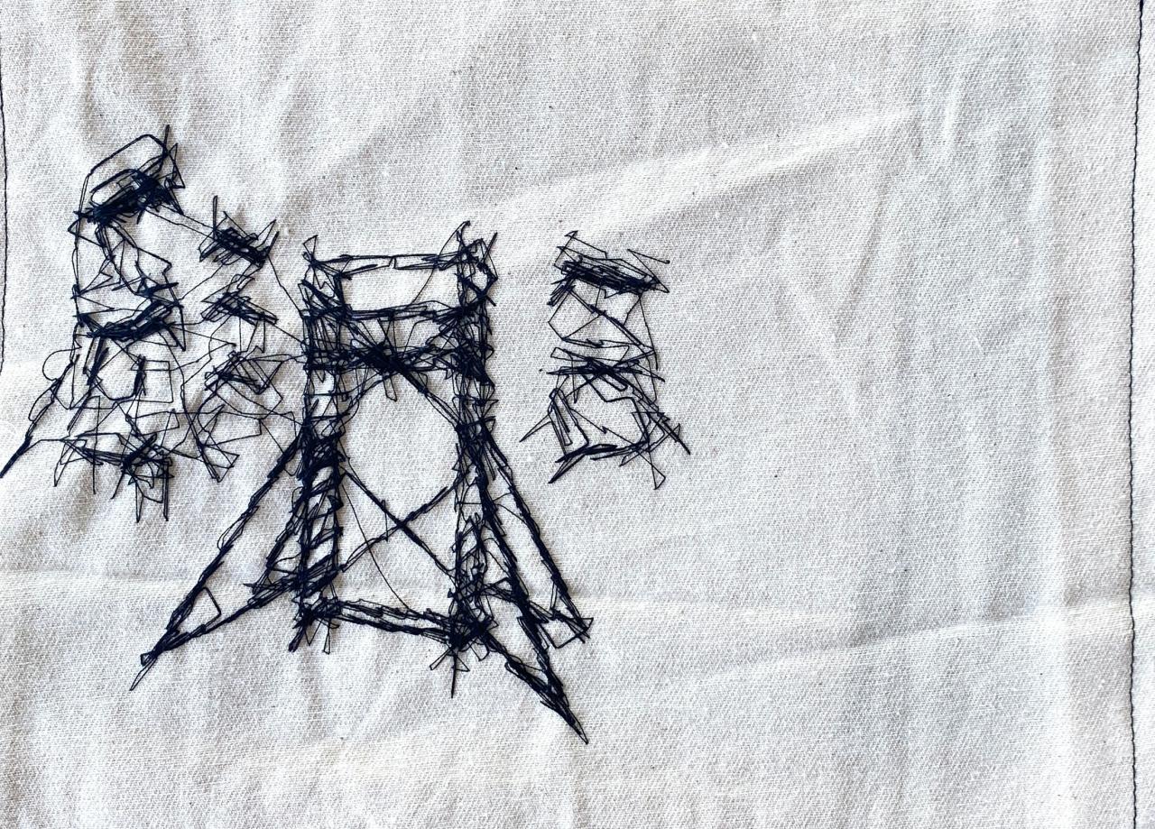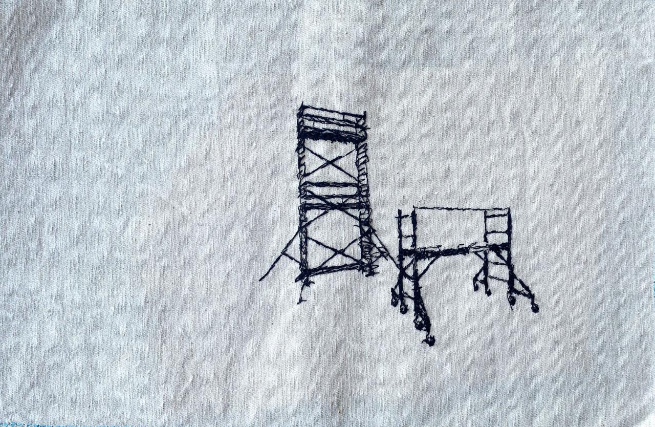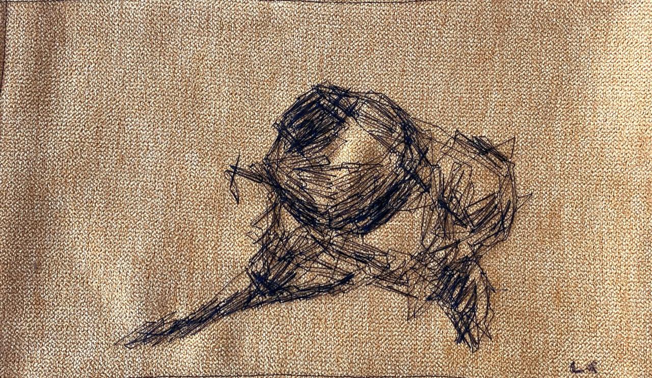 Broderie sur tissu bayadère, 25 x 15 cm.
