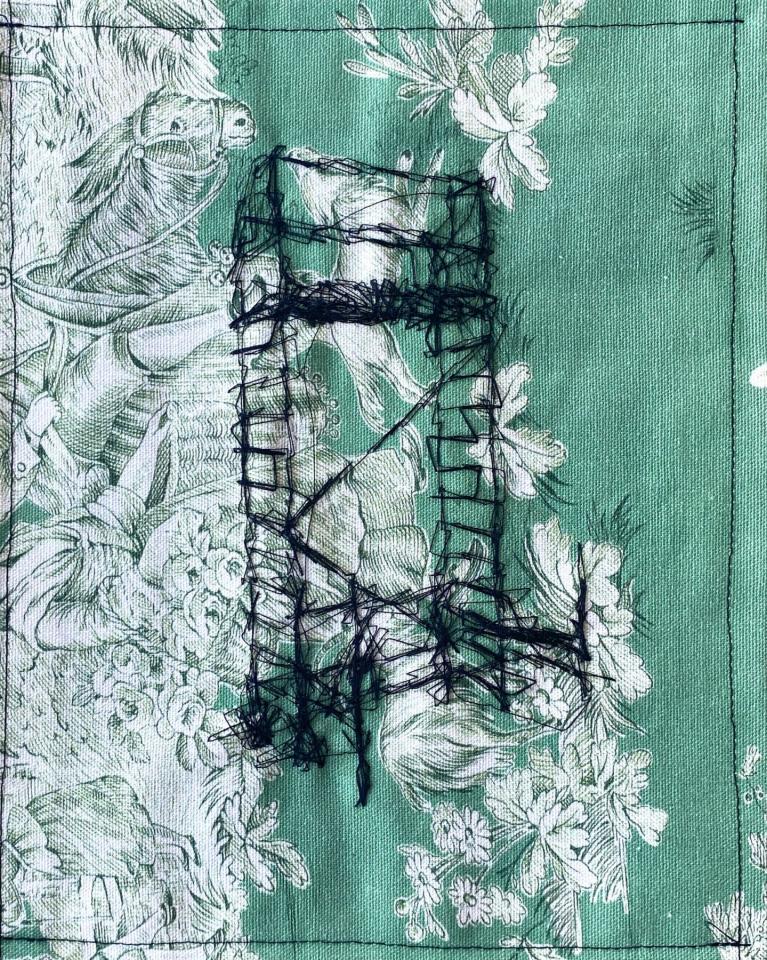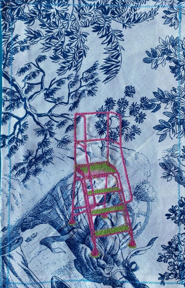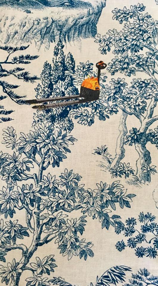 Broderie sur toile de Jouy, 24 x 20 cm.