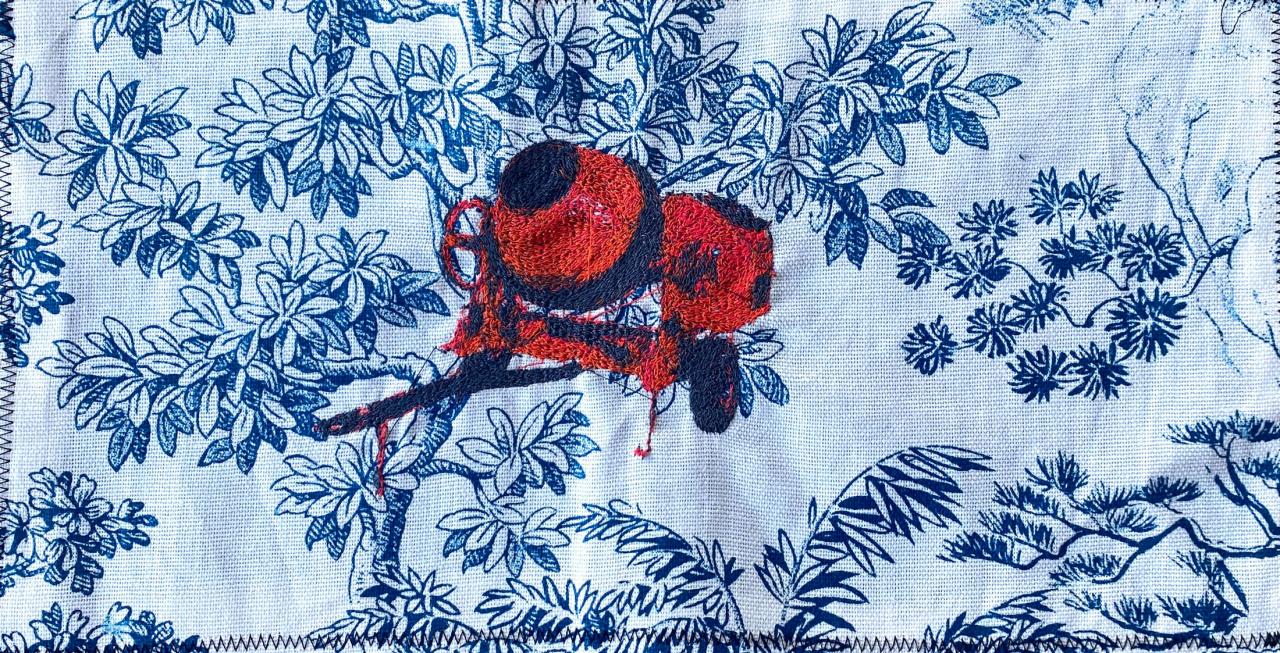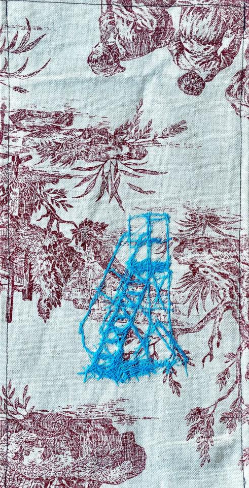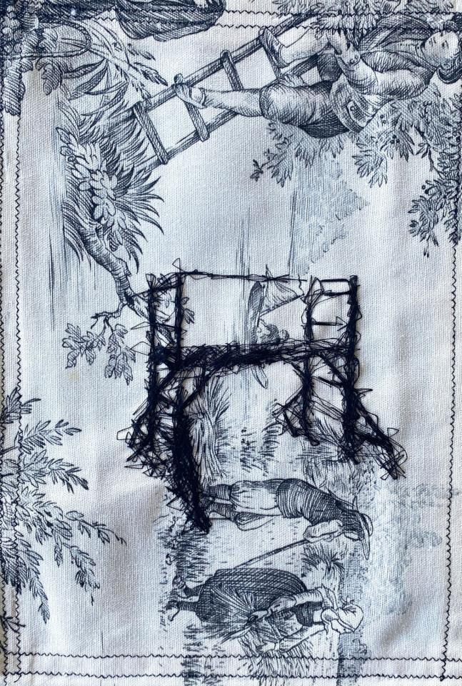 Broderie sur toile de Jouy, 22 x 18 cm.