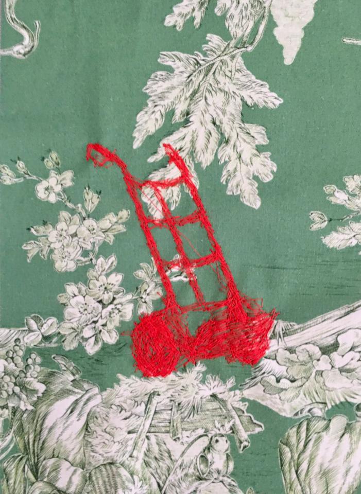 Broderie sur toile de Jouy, 30 x 20 cm.