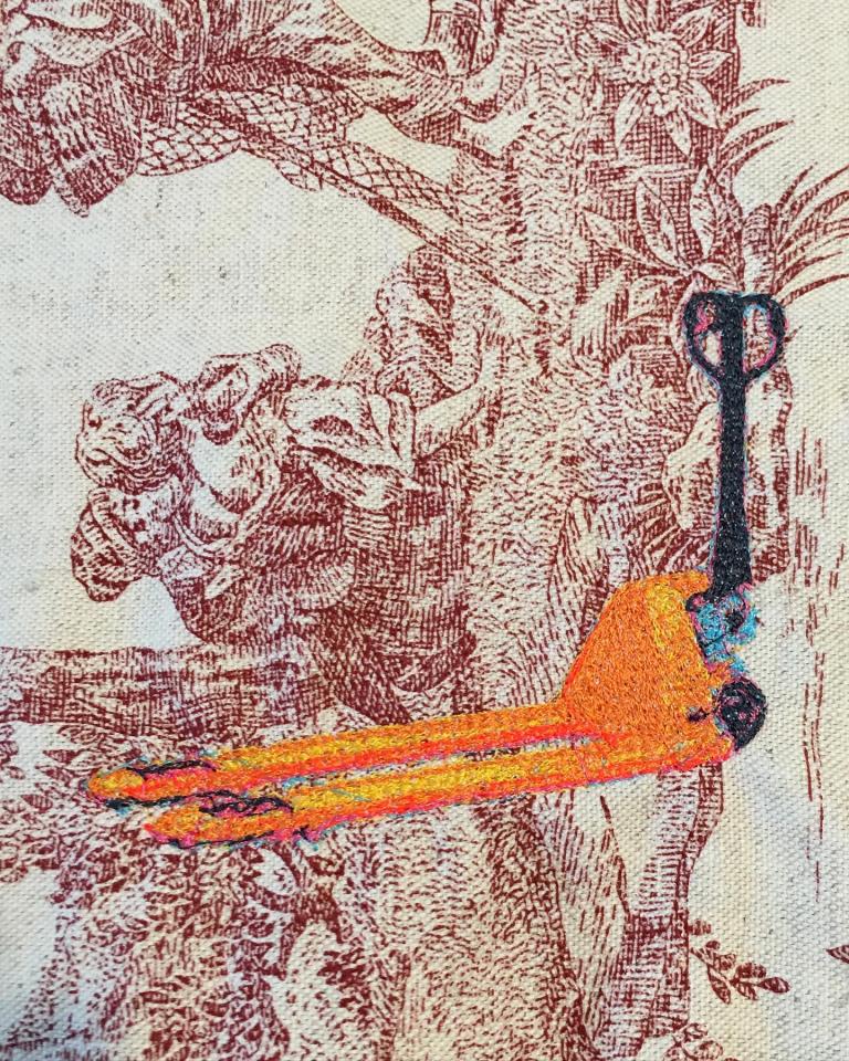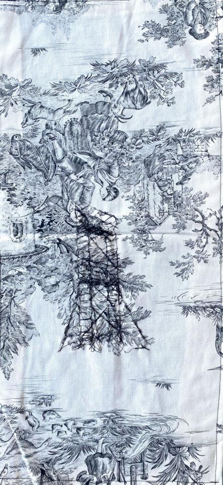 Broderie sur toile de Jouy, 40 x 25 cm.