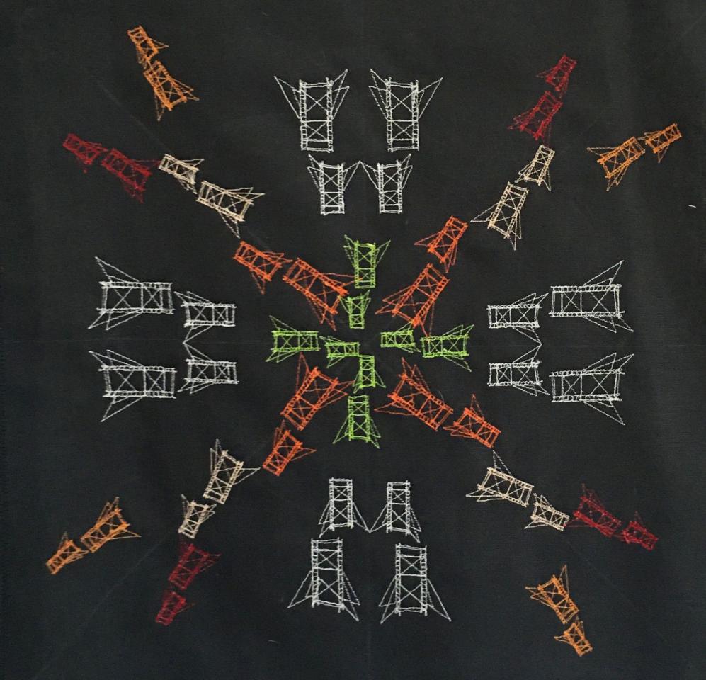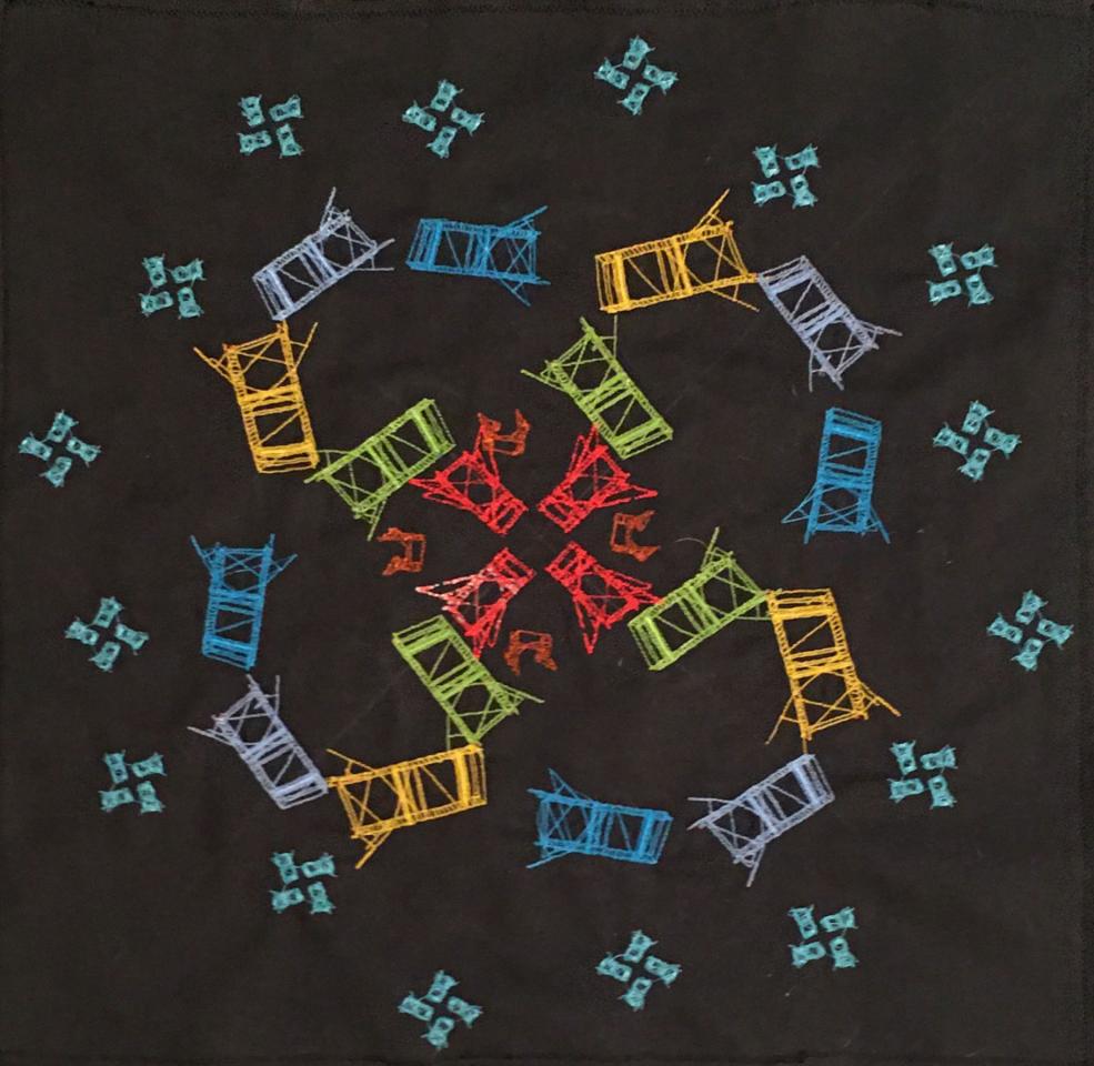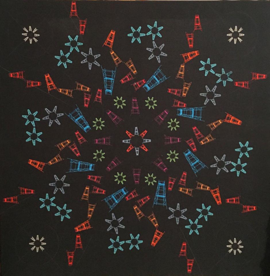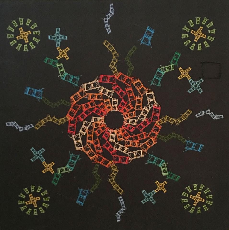 « L’échafaudage participe d’une élévation spirituelle - ici, c’est une sorte de mandala, support à la méditation à partir d’objets banals, tellement communs qu’on ne les voit plus. Et pourtant, quand on monte sur une nacelle, sur un échafaudage, on voit le monde différemment, une poésie peut naître. »