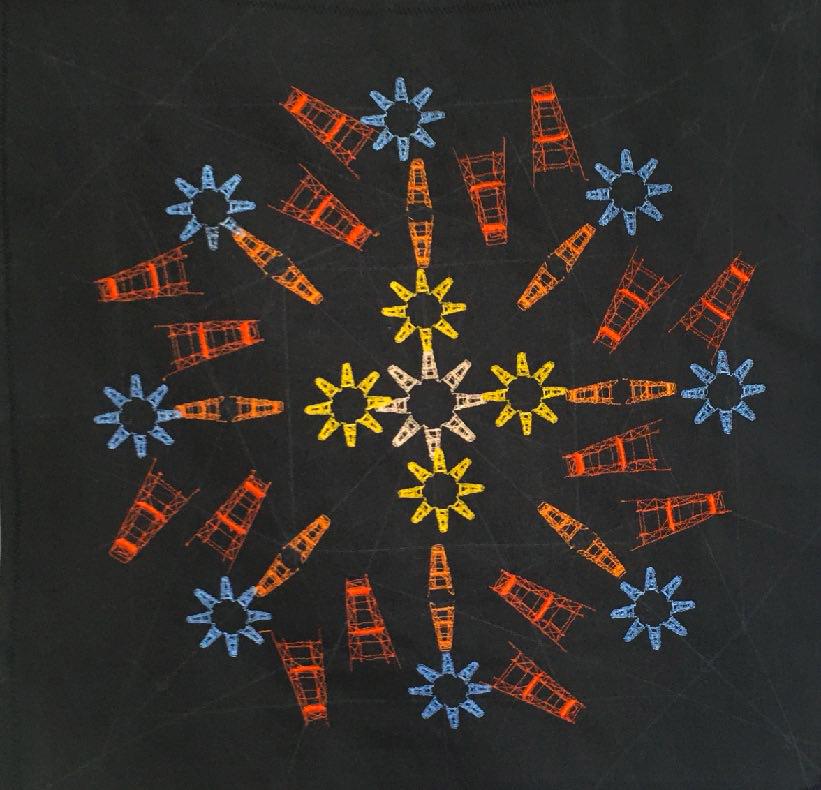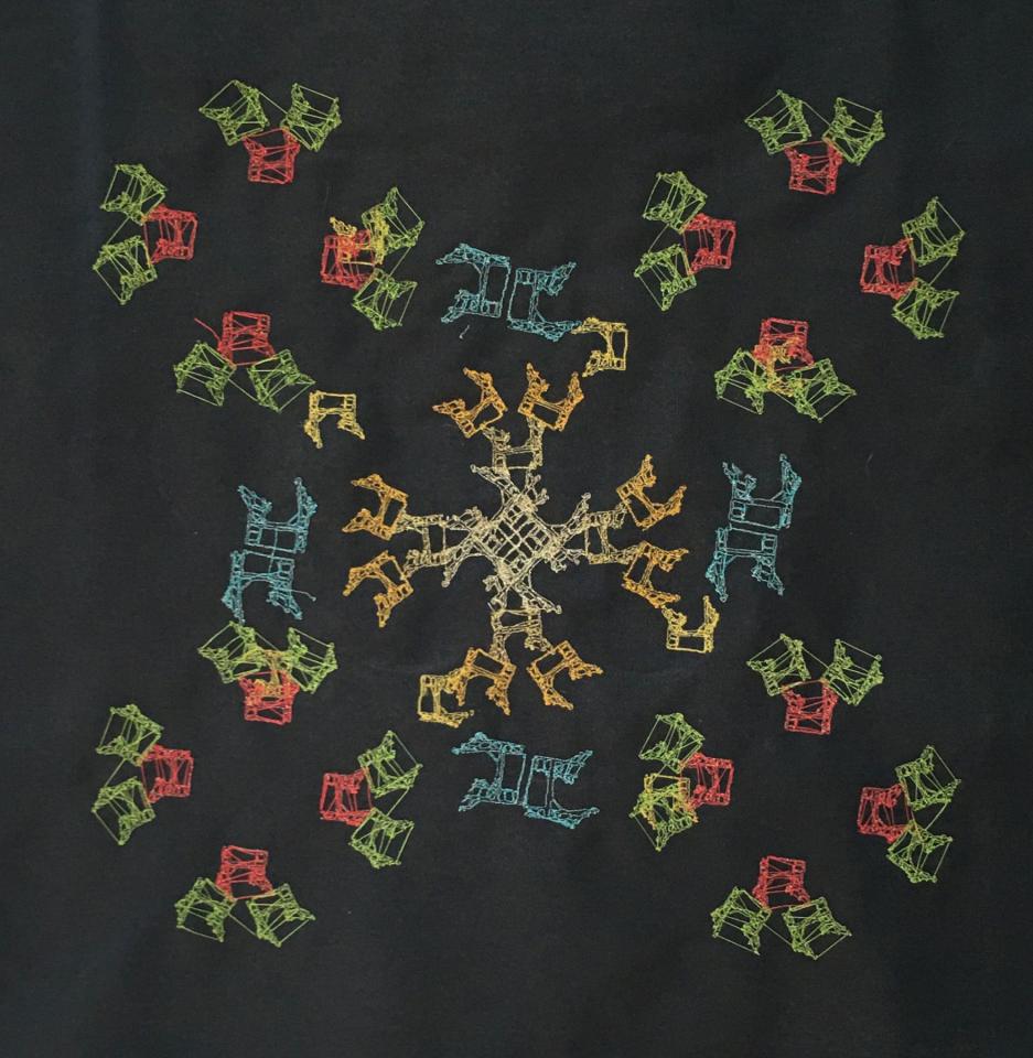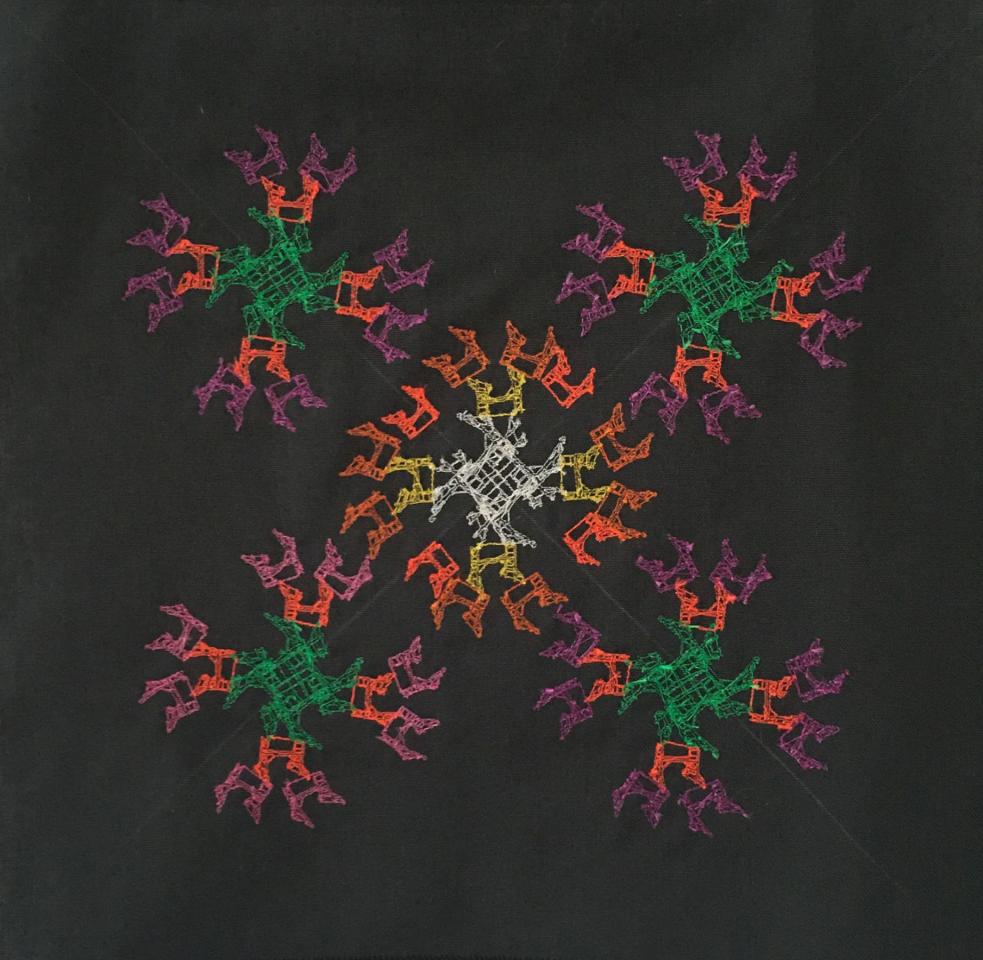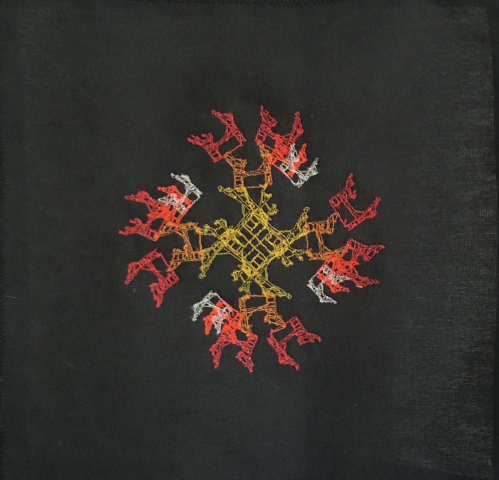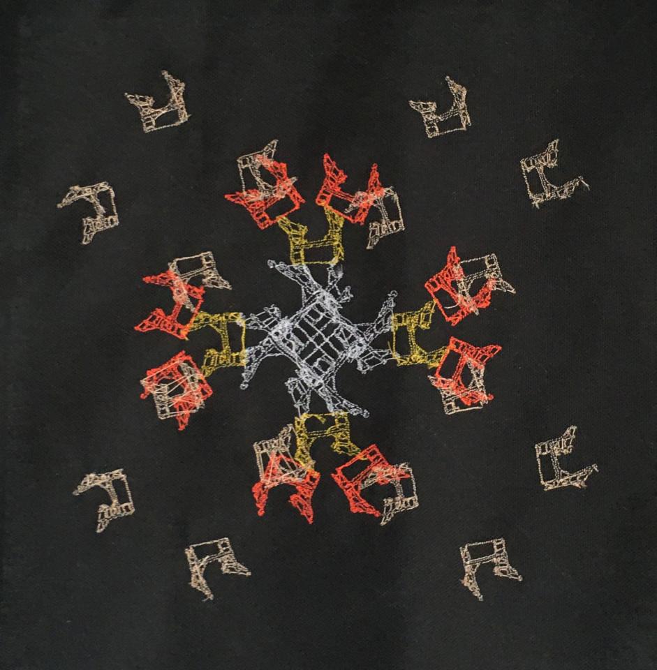 « L’échafaudage participe d’une élévation spirituelle - ici, c’est une sorte de mandala, support à la méditation à partir d’objets banals, tellement communs qu’on ne les voit plus. Et pourtant, quand on monte sur une nacelle, sur un échafaudage, on voit le monde différemment, une poésie peut naître. »