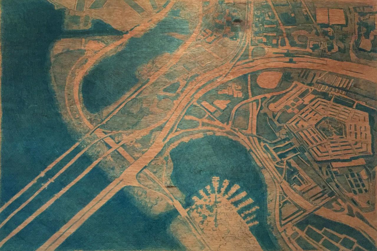 Stylo bille sur contreplaqué, 50 x 35 cm.