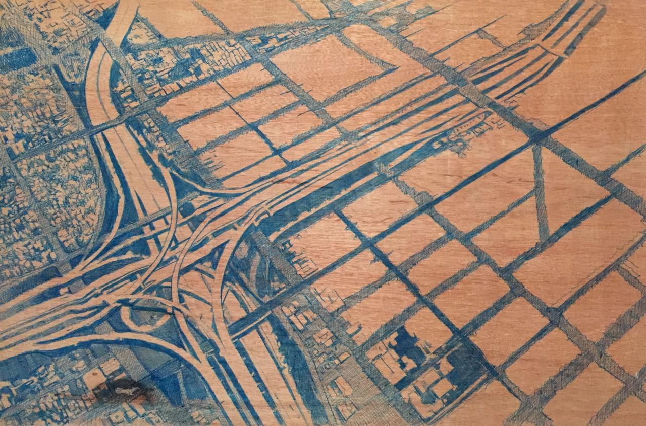 Stylo bille sur contreplaqué, 50 x 65 cm.