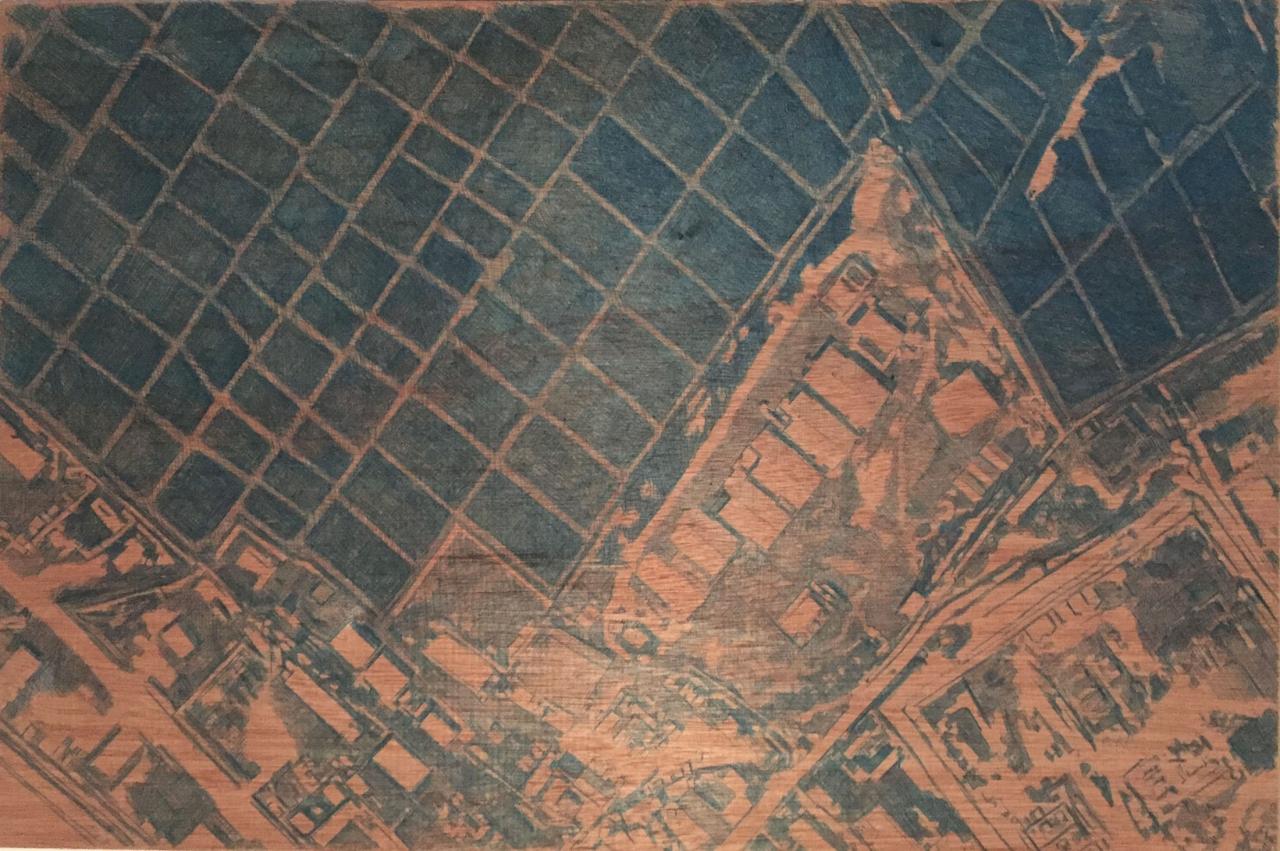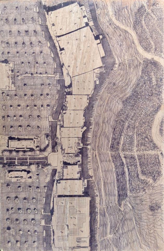 Stylo bille sur contreplaqué, 35 x 50 cm.