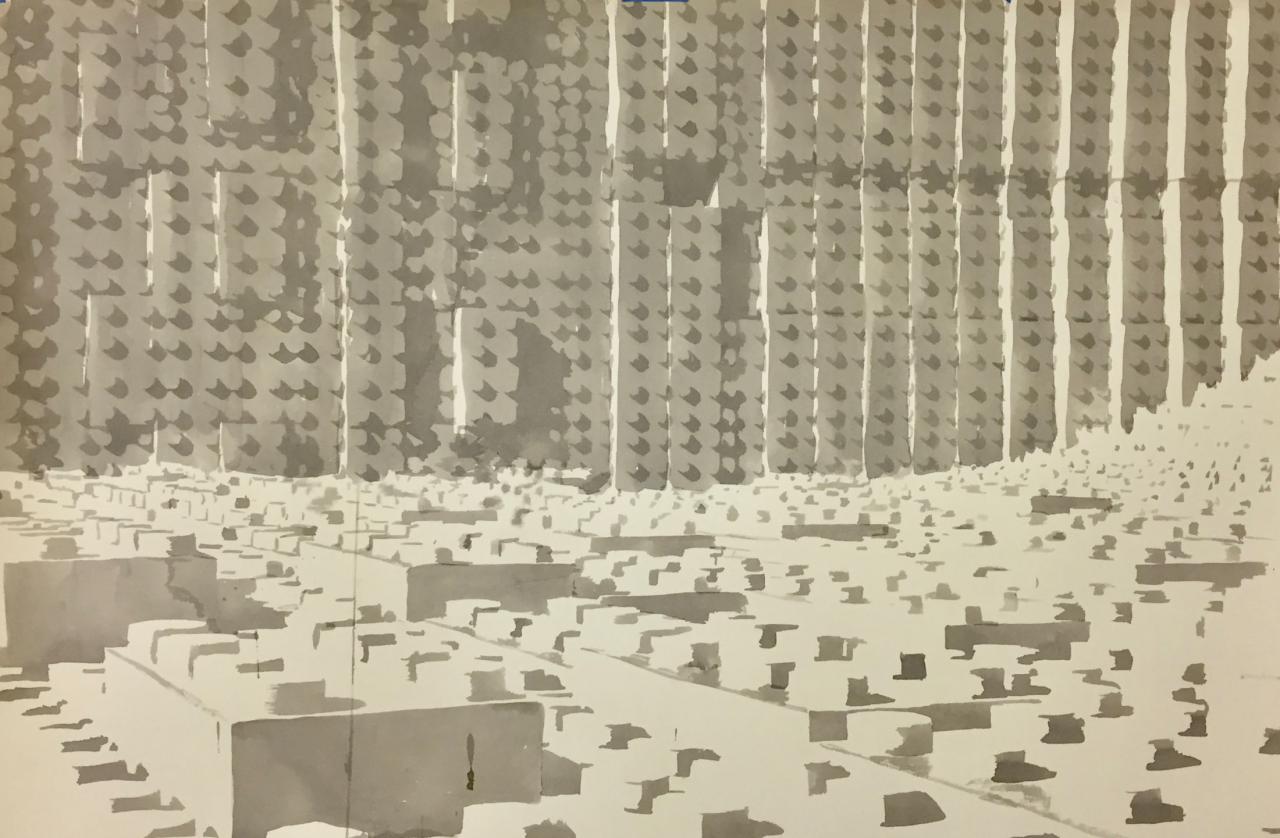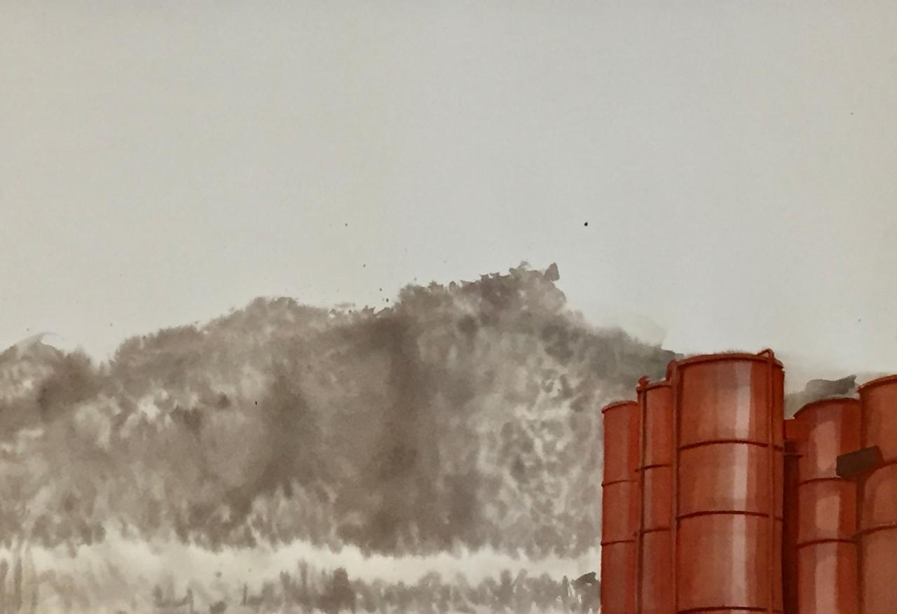 Aquarelle sur carton, 120 x 180 cm.
