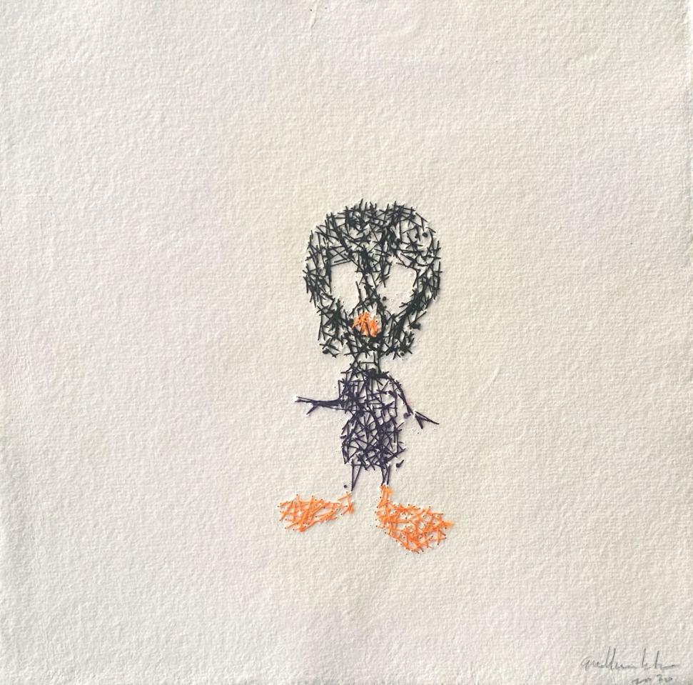 Broderie sur papier, 25 x 25 cm.