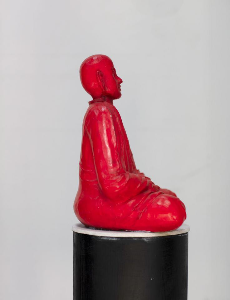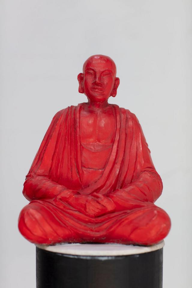 Bouddha is Red, 2006 Bouddha is Red, 2006Sculpture, faïence, peinture acrylique, bois, plastique, 55 x 22 x 17 cm.
