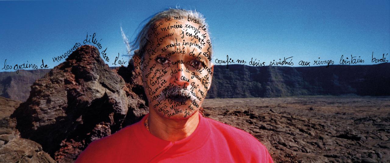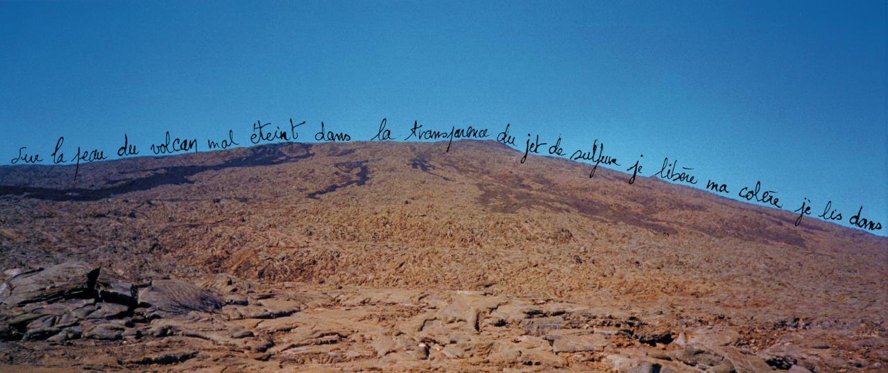 Errance - Connexion à la verticale du cratère, 2003 Errance - connexion verbale à la verticale du cratère, 2003Triptyque, tirage papier sur support plastique, 63 x 450 cm.