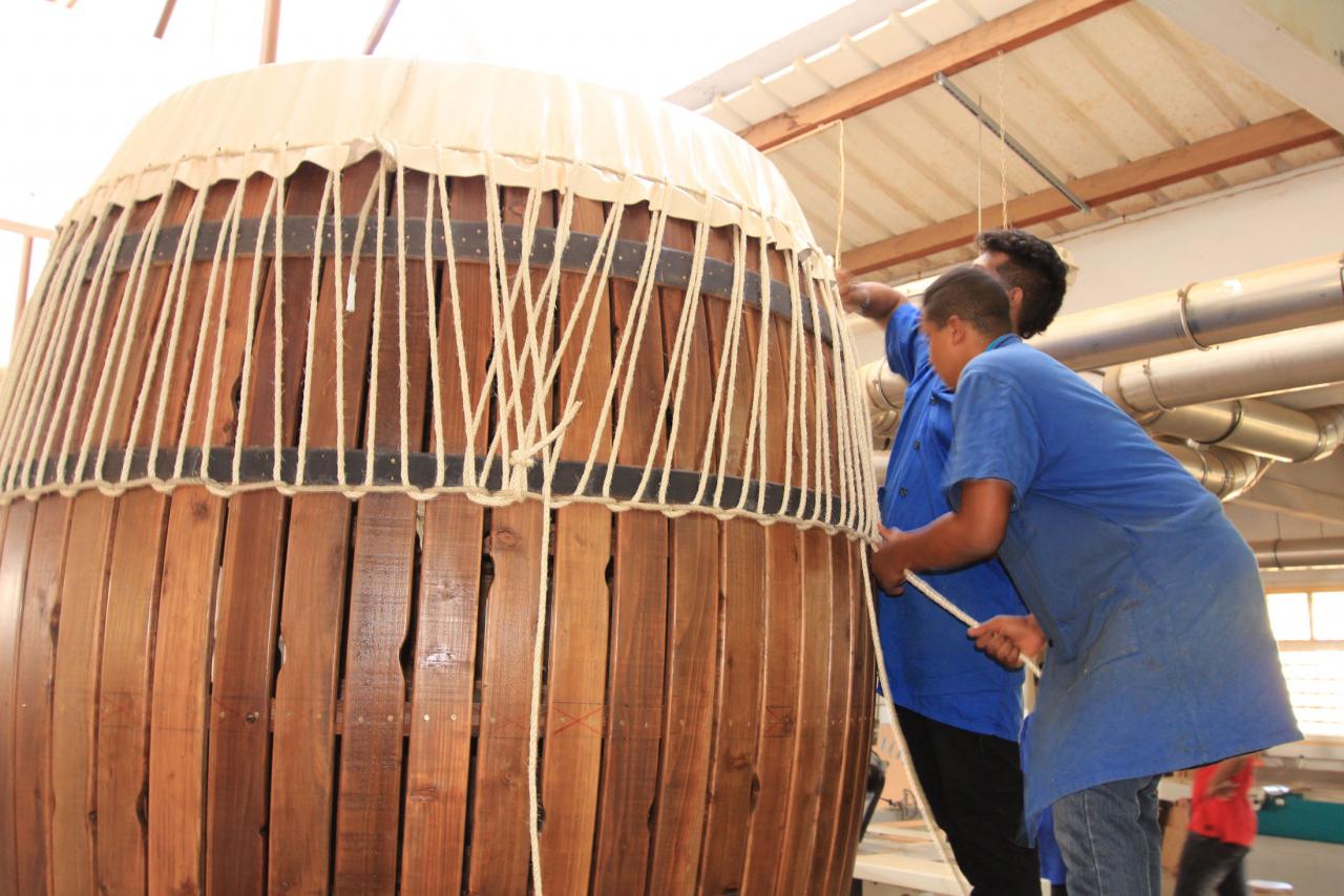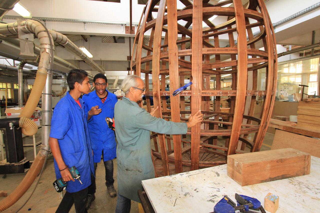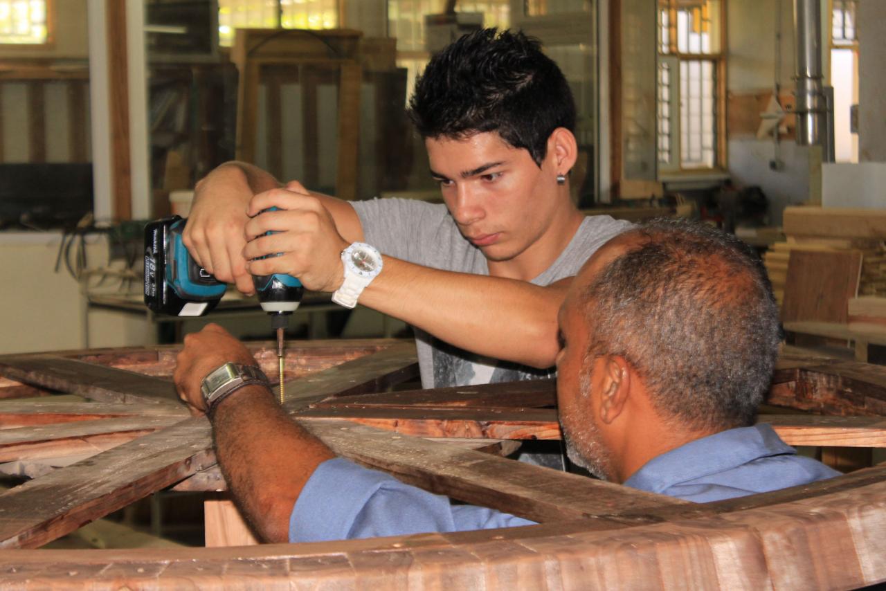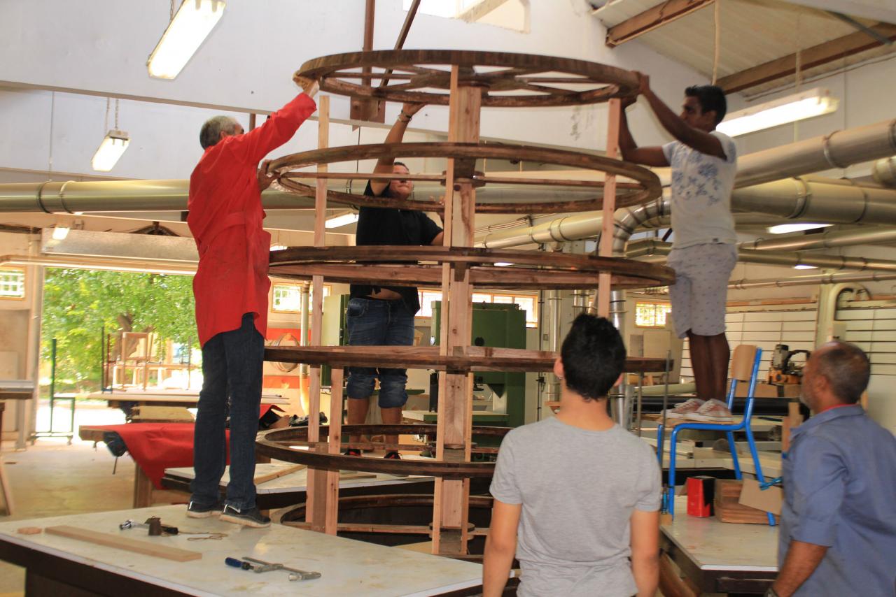 Travail au long cours avec les élèves du CAP et Bac Pro Ébénisterie et charpente bois du lycée.