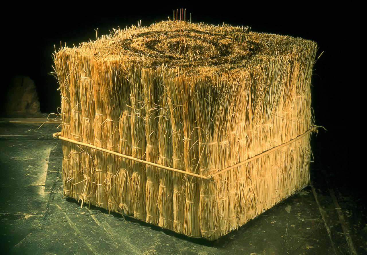 Installation, terre cuite, fibres végétales, aluminium, 400 x 233 x 253 cm.